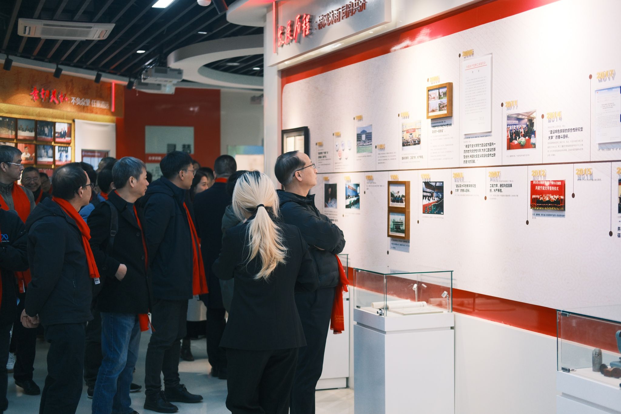 最后,校友们前往参观了校史馆,有的校友在展示学校早期风貌的照片前停下脚步,仔细辨认着照片中的场景,回忆着自己初入校园时的模样;有的则围聚在学校历年科研成果的展示区,看着那些代表着学校学术高度的奖杯、证书和科研模型,在回顾历史中感受着母校的文化底蕴和发展动力。