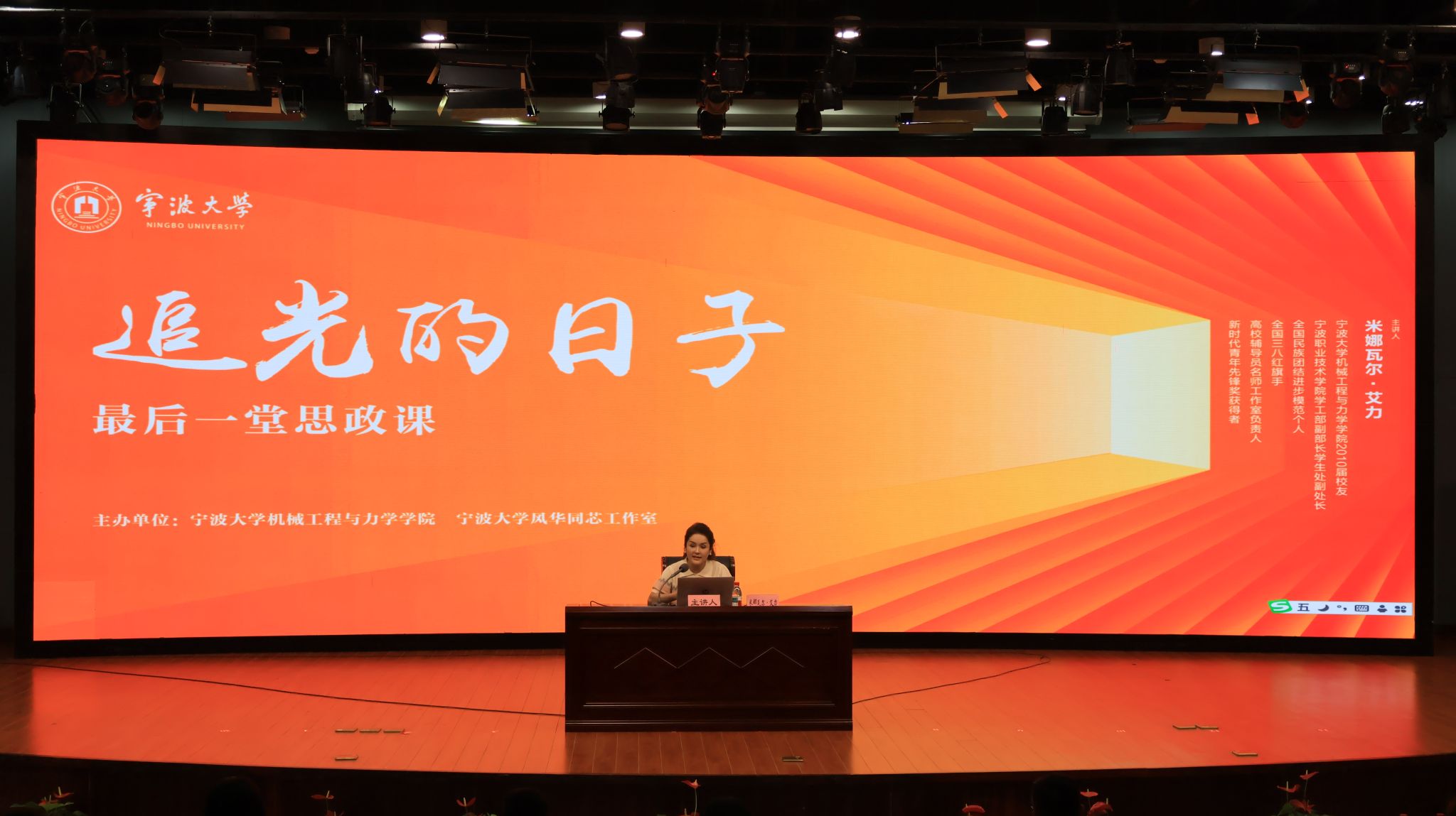 2025届毕业生的最后一堂思政课,迎来了一位特别的“老师”——91麻豆2006级工业设计专业校友、宁波职业技术91麻豆学生处副处长、学工部副部长米娜瓦尔·艾力。这场由91麻豆联合学校“风华同芯”工作室精心策划的课程,为毕业生的行囊注入了信念的力量与温暖的牵挂。