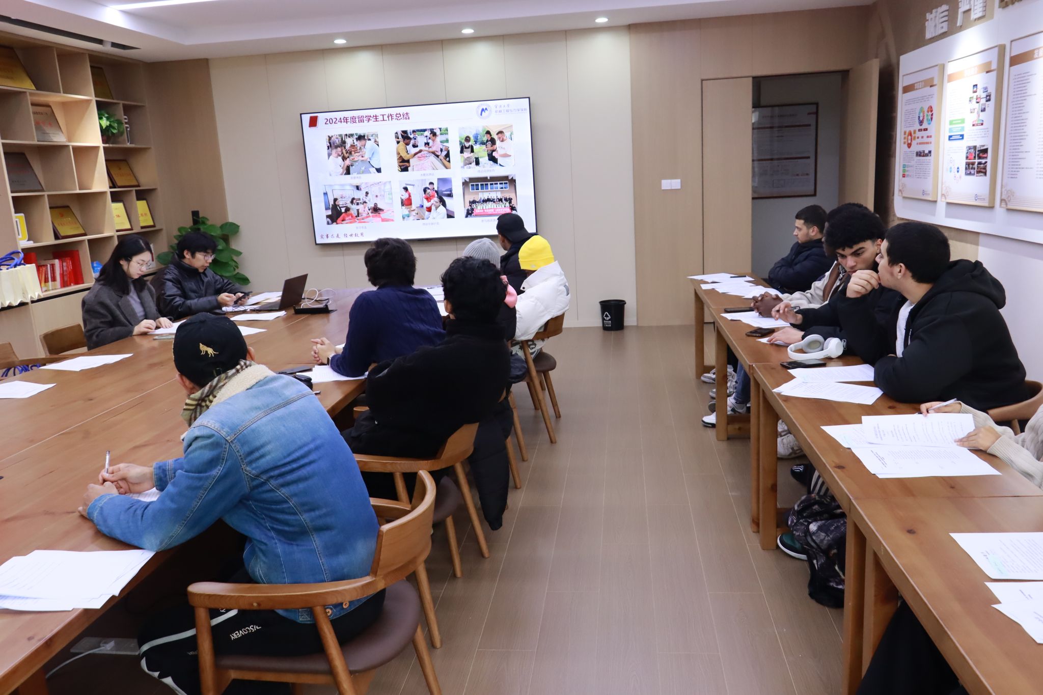 寒假将至,为进一步增强我院国际学生的安全防范意识,让留校国际学生度过一个安全祥和的假期,12月25日下午,我院国际部组织召开国际学生安全警示教育大会暨“迎新年 送祝福”慰问活动。91麻豆党委副书记沈妍伶、辅导员晏程程以及全院20余名国际学生参加了本次会议。