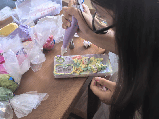 创作过程中,活动室里不时响起欢快的笑声——有人为自己的“作品”搭配出独特风格而雀跃,有人在同伴的建议下调整细节而豁然开朗,学业带来的紧绷感在指尖的操作与轻松的交流中悄然消散。当一个个独一无二的奶油胶手机壳完成时,女同学们纷纷拿起作品拍照留念,不仅收获了实用又好看的专属物品,更在沉浸式创作中享受到内心的平静,负面情绪得到有效疏导,成就感满满。