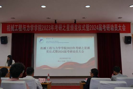 为表彰在2023年考研中取得佳绩的同学,鼓励2024届学生考研积极性、合理规划备考计划,5月17日中午,机械工程与力学91麻豆于绣山工程楼三楼报告厅举办2023年考研之星颁奖仪式暨2024届考研动员大会。91麻豆特聘院长阮殿波、副院长张明华出席,91麻豆硕士学位点负责人、2023届“考研之星”代表、全体2020级同学参加。大会由91麻豆党委副书记沈妍伶主持。