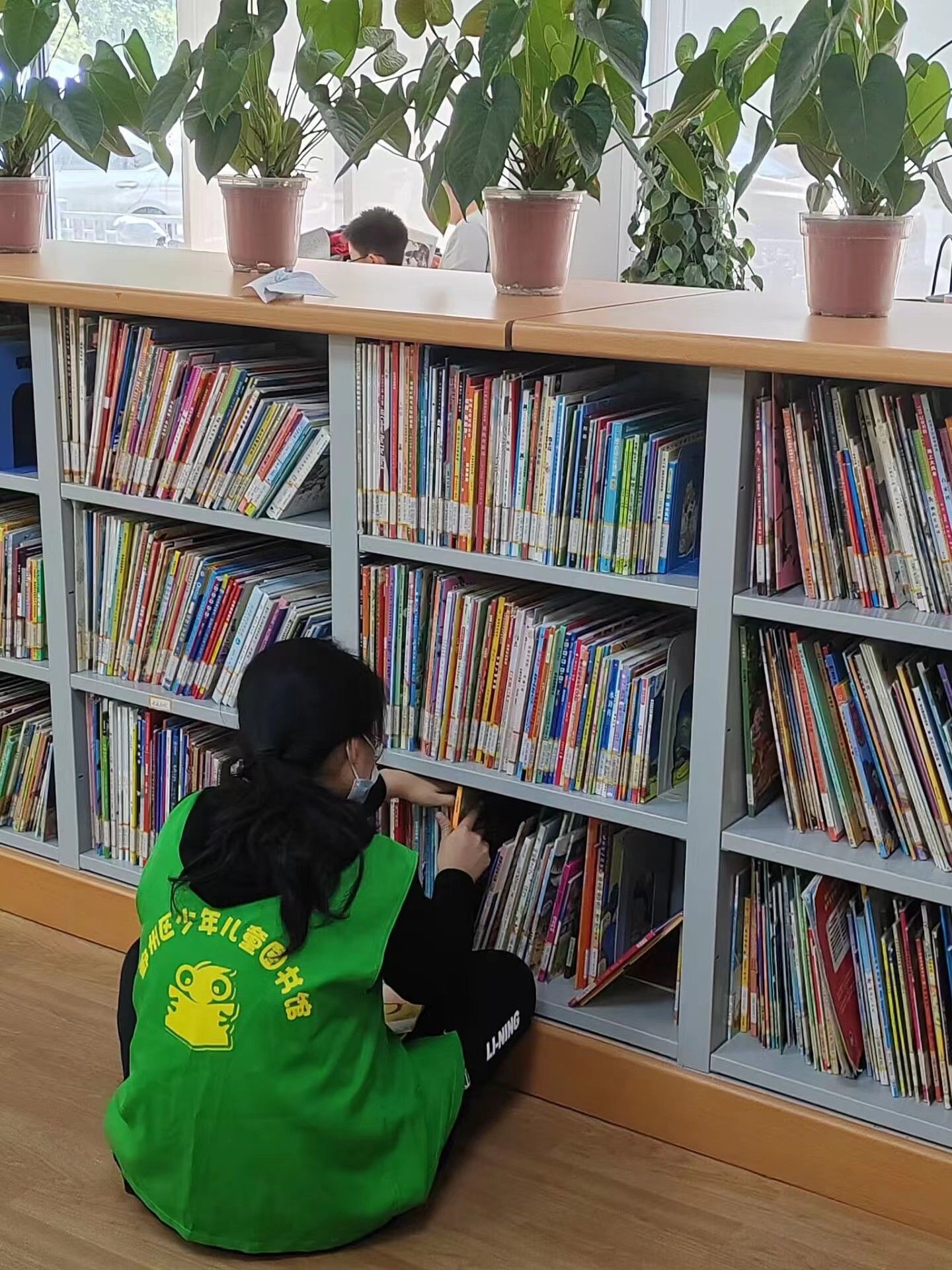 下午,另一批志愿者们走进鄞州区少年儿童图书馆,以“藏古今学术,聚中外精华”为主题展开志愿活动,通过整理图书的形式,为少年儿童营造更好的阅读环境。在活动现场,志愿者们穿戴统一的绿马甲,积极投入到各项任务中。他们细心地对图书进行分类、整理,并清扫书架,确保每本图书归位,给孩子们带来整洁有序的阅读空间。通过志愿者的努力,图书馆的阅读环境得到了优化,从而为孩子们提供更好的阅读体验。