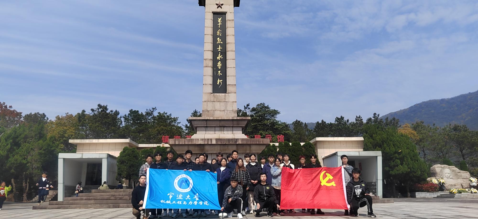 第一站是镇海革命烈士陵园。活动现场,全体党员、团员排好整齐的队伍静默站立,面向烈士纪念塔鞠躬默哀三分钟,哀闭后各位同学有秩序地向革命烈士纪念塔敬献鲜花,向烈士三鞠躬,并绕行瞻仰革命烈士纪念塔,向革命烈士表达崇高敬意和深切怀念。