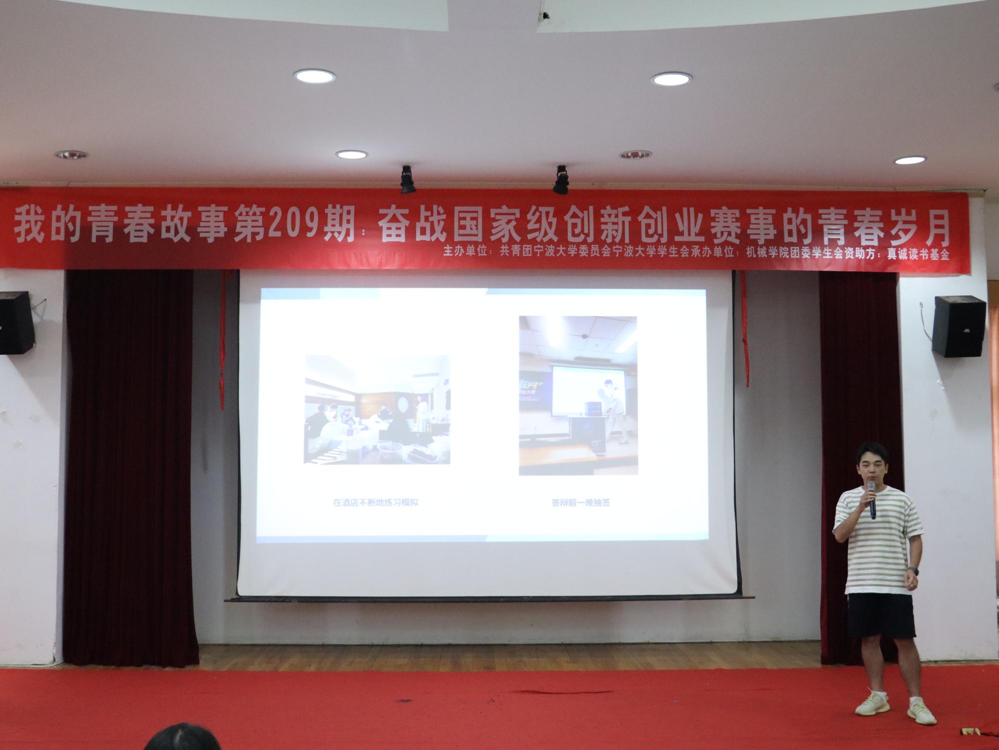 委员会主办,机械学院团委承办,真诚读书基金资助的“我的青春故事”第209期之“奋战国家级创新创业赛事的青春岁月”故事分享会在绣山工程楼三楼报告厅举行。