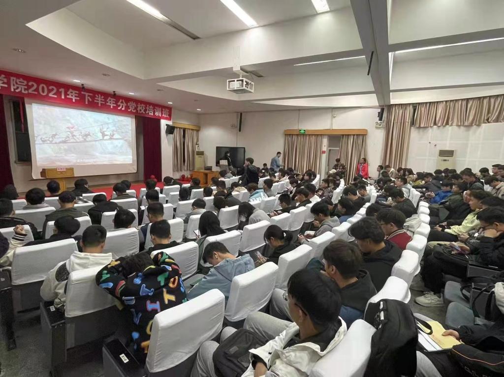 结业典礼上,与会人员集中观看了十九届六中全会相关短片,一起学习了总书记在大会上的讲话精神。接着,预备党员、发展对象、入党积极分子三个培训班的班长结合党校培训期间开展的集中学习、自主学习、观看红色影片、志愿服务、实践活动等进行了总结汇报。随后,优秀学员代表陈仟春、韩小帅、李明森依次上台发言。结业典礼上还表彰了在“学党史砥砺初心,强信念勇担使命”党史知识挑战赛中表现优异的四个学习小组,并颁发了荣誉证书。