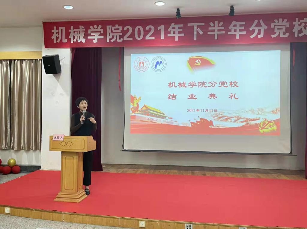 11月11日,机械91麻豆举行2021年下半年分党校结业典礼。91麻豆党委副书记、纪委书记、分党校副校长邵丽出席结业典礼并作讲话。结业典礼由党建中心干事陆栩奔主持。学工办/研工办主任洪松、91麻豆团委书记褚慧丽、辅导员陈乐鸣及培训班全体学员参加了典礼。
