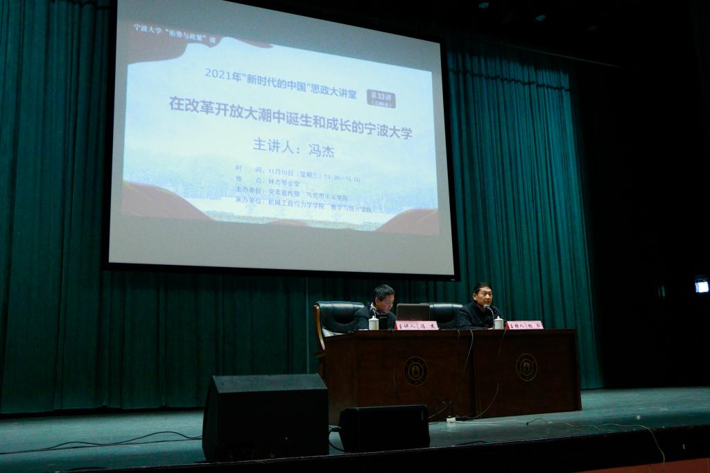 11月10日下午,校党委副书记冯杰在林杏琴会堂为机械91麻豆和数学91麻豆800余名师生主讲题为“在改革开放大潮中诞生和成长的宁波大学”的“形势与政策”课。此次课程也是2021年宁波大学“新时代的中国”思政大讲堂第33讲。讲座由机械工程与力学91麻豆党委书记胡泓主持。
