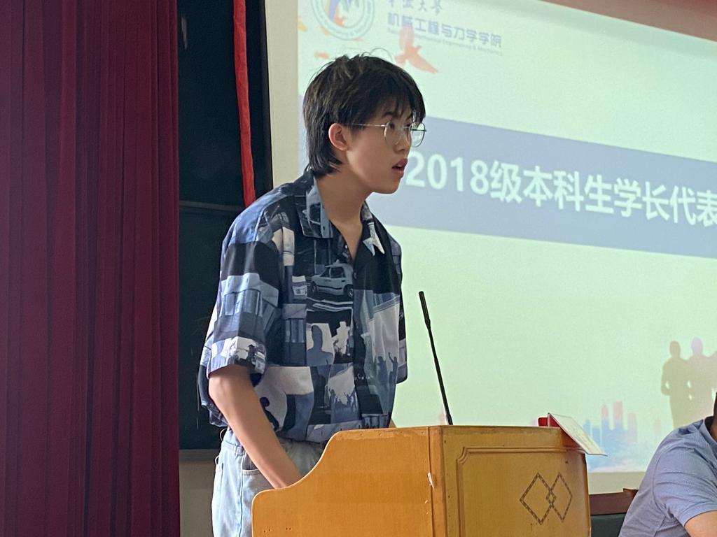 之后,班主任代表李凯老师发言,希望同学们能够树立崇高理想、正视困难、行稳致远,找准与国家发展相契合的人生定位,昂首阔步踏上与党同向、与国同行之路。18级代表齐斌学长作为老生代表,以自身学习经历经验为鉴,激励学弟学妹们全面发展,不忘初心,做到家事国事天下事事事关心。20级学生代表骆立锋同学提出“规划”与“自律”两大重要学习经验,激励同学们力求务实、创新、开拓进取。