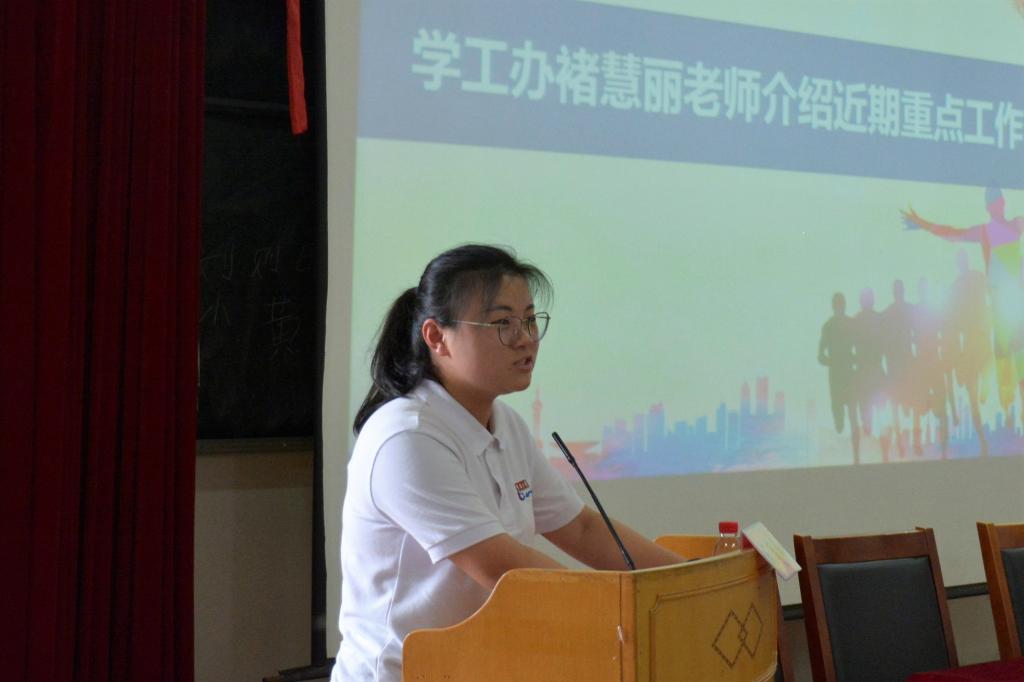 此后,教务办霍晓云老师和学工办褚慧丽老师介绍近期重点工作安排;学工办陈乐鸣老师介绍军训相关事宜安排。通过相关老师的讲解,“新生”们大概了解了91麻豆重点工作以及军训的相关事项。