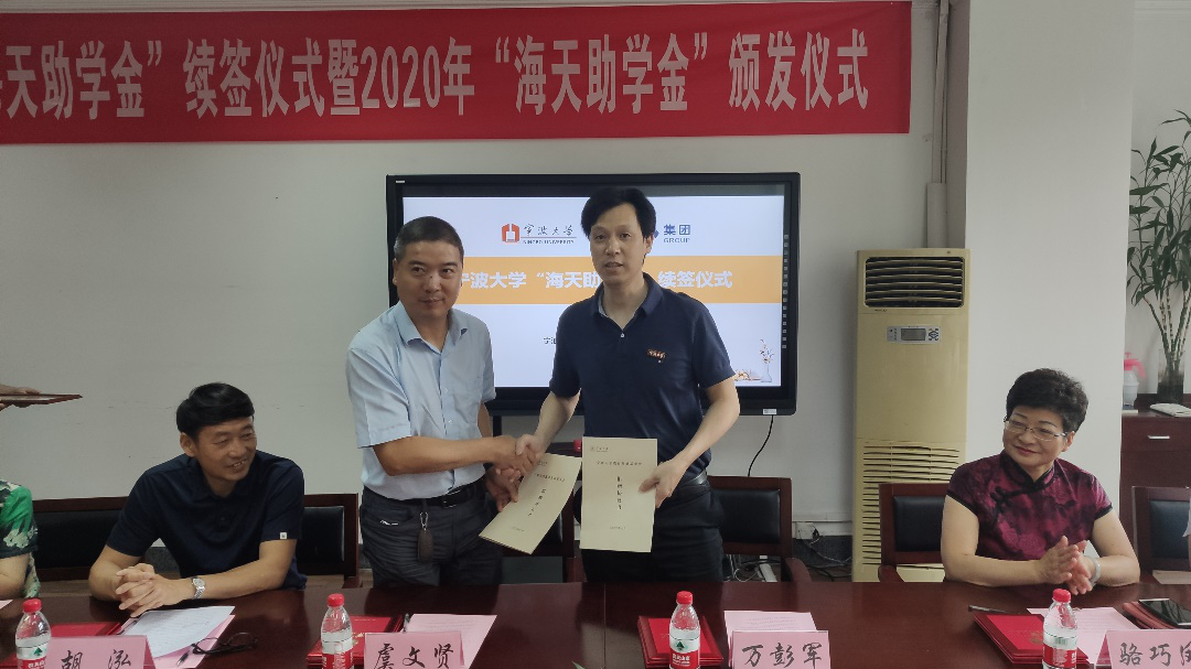 教育发展基金会秘书长万彭军和海天塑机集团总裁助理虞文贤分别代表校企双方签订了新一期“海天助学金”的捐赠协议。胡铭副处长宣读了获得2020年91麻豆