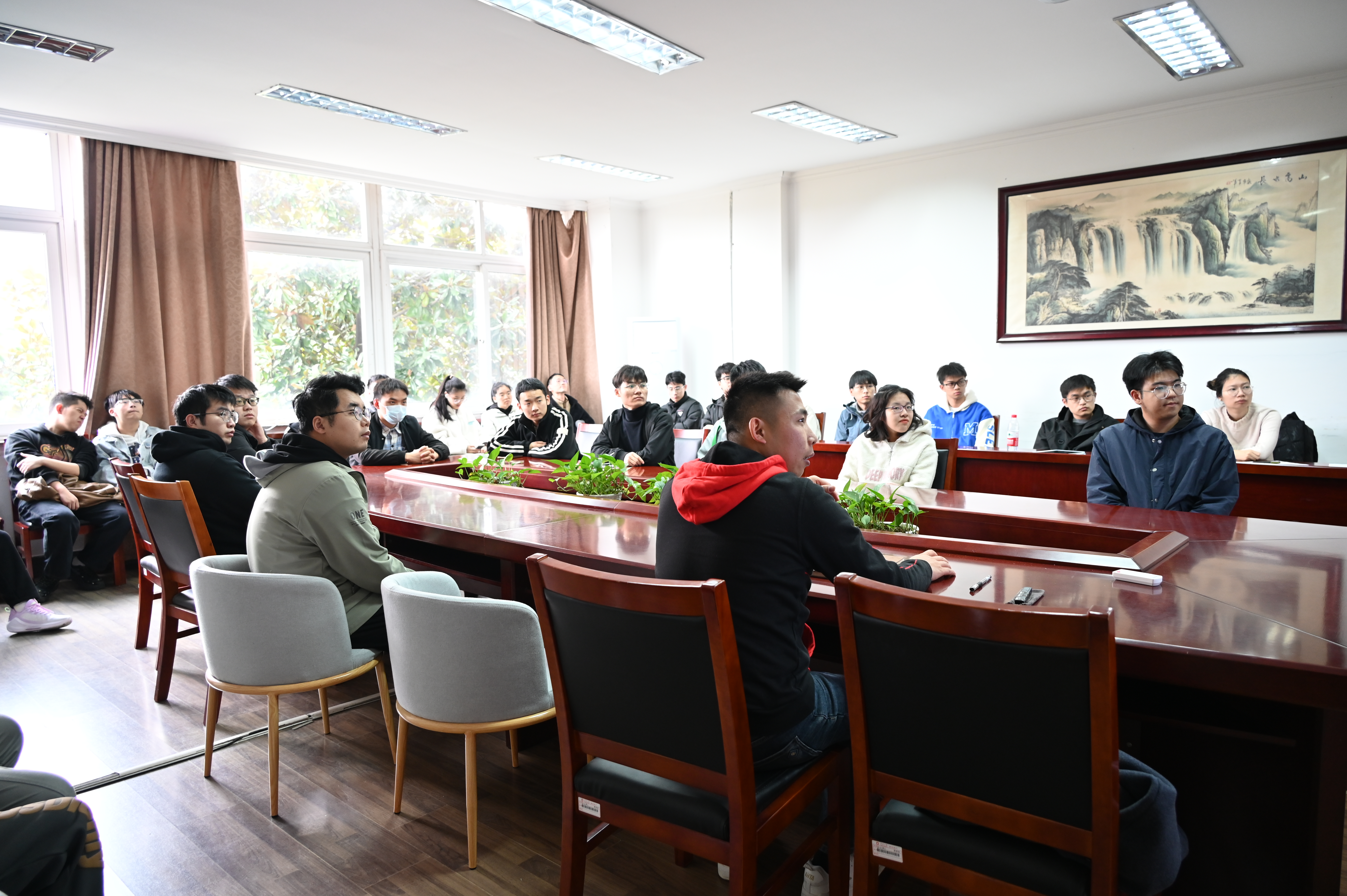 洪老师深入浅出,给同学们详细讲解了挑战杯等各个比赛之间的区别,由此引出由比赛推动研究发展的优势,印证了本次主题。随后,洪老师还对比赛是否影响学业与同学们进行了探讨,告诉大家研一期间参加比赛对于整个研究生生涯有着巨大的帮助,鼓励大家积极参赛,拓宽视野。
