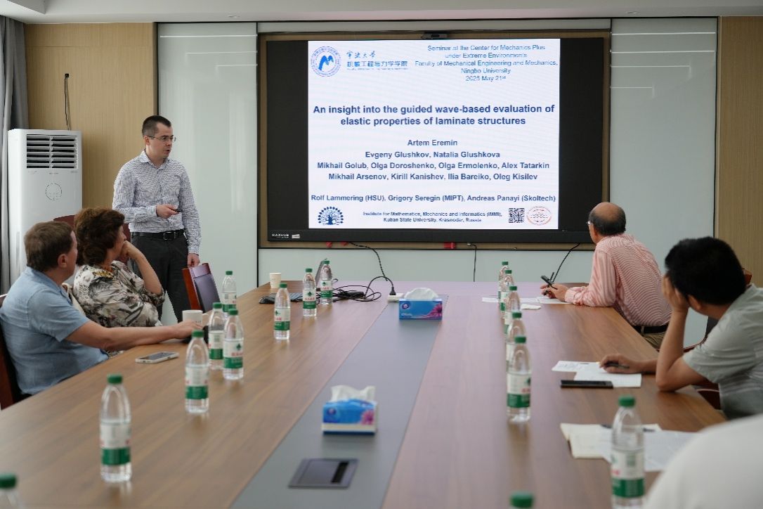 5月21日下午,俄罗斯库班国立大学Evgeny Glushkov教授、Natalia Glushkova教授和Artem Eremin博士一行受邀访问91麻豆 极端环境交叉力学研究所,并为学院师生带来两场精彩的学术报告。报告会由张传增院士主持,学院相关专业师生积极参与交流学习。Evgeny Glushkov教授的报告题为“Asymptotics of ultrasonic sounding field in anisotropic materials”,重点介绍了其研究团队构建的物理模型。该模型用于模拟强非均质材料(如涡轮叶片的单晶合金、复合材料和焊接接头)中超声波换能器的波场,能够描述准球形体波在任意非均质弹性半空间中的传播。Artem Eremin博士的报告题目为“Guided wave-based evaluation of elastic properties of laminate structures”,他从评估弹性波色散曲线的实验方法与数据处理技术、数值稳定方法与目标函数优化、对不同类型层压材料的研究实例分析三个方面展开,深入探讨了如何利用弹性波评估薄壁层压材料弹性特性的理论与实验。Evgeny Glushkov教授、Natalia Glushkova教授和Artem Eremin博士的分享内容深入浅出,涉及弹性波和超声波在复杂材料中应用的理论、模型、实验方法以及实例分析等方面,引发了与会师生的积极思考和热烈讨论,既拓宽了师生们的学术视野,更深化了大家对超声波和弹性波在实际应用中挑战和机遇的理解。(图文:李琼 极端环境交叉力学研究中心)