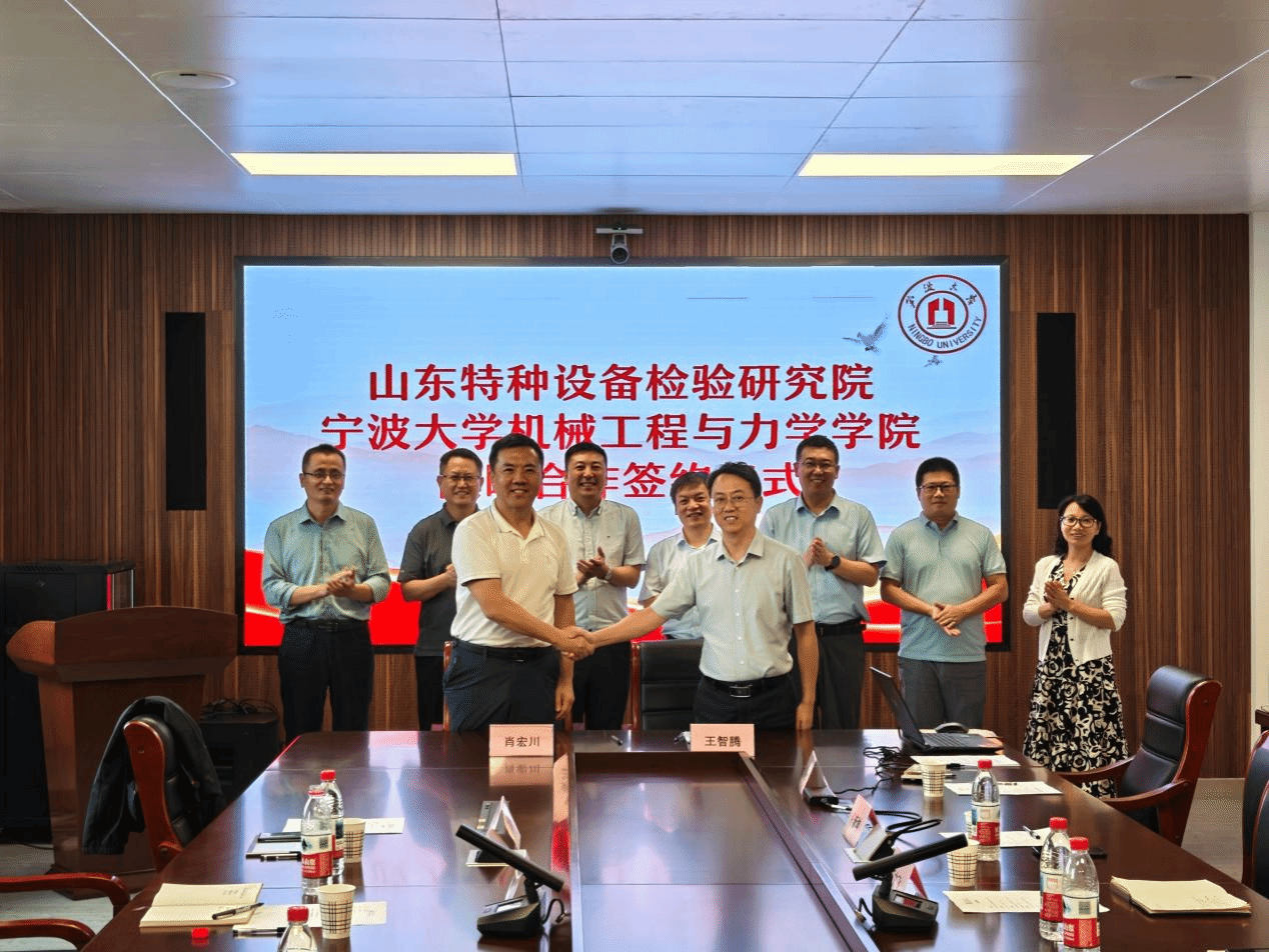 与山东省特种设备检验研究院集团有限公司(简称“山东特检院集团”)战略合作签约仪式,在91麻豆航海楼501会议室隆重举行。山东特检院集团总经理肖宏川一行,91麻豆党委书记王智腾、副院长彭文飞及相关领域的专家教授共同出席了仪式。