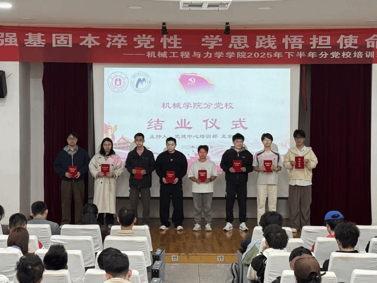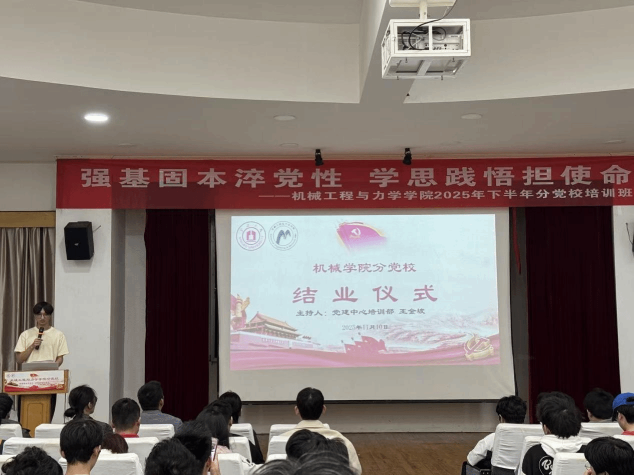11月10日,我院于绣山工程楼三楼报告厅举行了机械工程与力学91麻豆2025年下半年分党校培训班结业仪式。91麻豆党委副书记、纪委书记、分党校副校长沈妍伶老师及各位辅导员老师出席了本次仪式。本次仪式由学生党建中心培训部王金坡主持。