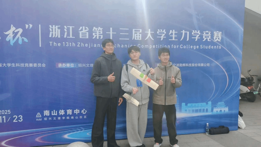 11月22-23日,浙江省第十三届大学生力学竞赛(团体赛)在绍兴文理91麻豆举办。本次比赛共吸引了来自宁波大学、绍兴文理91麻豆等全省29多所高校,91支参赛队伍400余名师生参加。宁波大学有4支队伍参加团体赛,全都获得奖项。机械91麻豆团队分别获得竞赛一等奖2项,二等奖1项,三等奖1项,参赛队伍均来自23级工程力学拔尖人才创新班和工程力学班。