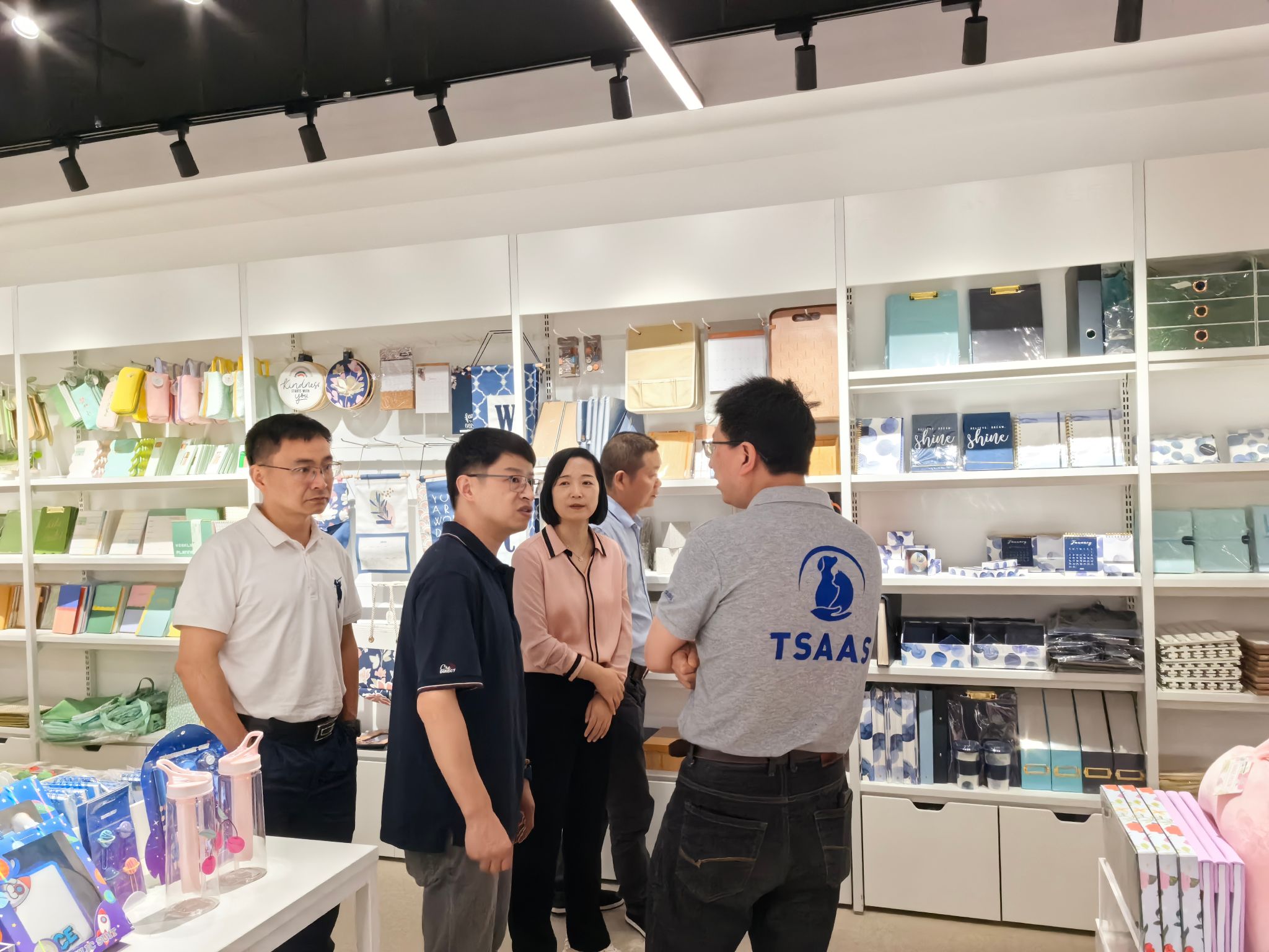 聚焦市场动态,交流共叙情谊。在王桂强校友的引导下,参访校友们实地参观了创源文化的展厅,他详细介绍了公司从初创至今的发展历程、核心业务以及依托前沿设计理念构建的多元化产品体系。在随后的座谈交流中,校友们围绕当前全球经济形势下的市场挑战与机遇展开了热烈讨论。大家重点探讨了创源文化在国际市场布局的策略、应对贸易环境变化的经验,以及国内市场的拓展方向。王桂强分享了企业在复杂国际形势下稳定供应链、开拓新市场的实战心得。这场立足行业前沿、结合校友专业背景的务实交流,不仅深化了校友们对产业发展的理解,更在思想碰撞中进一步增进了彼此的情谊。
