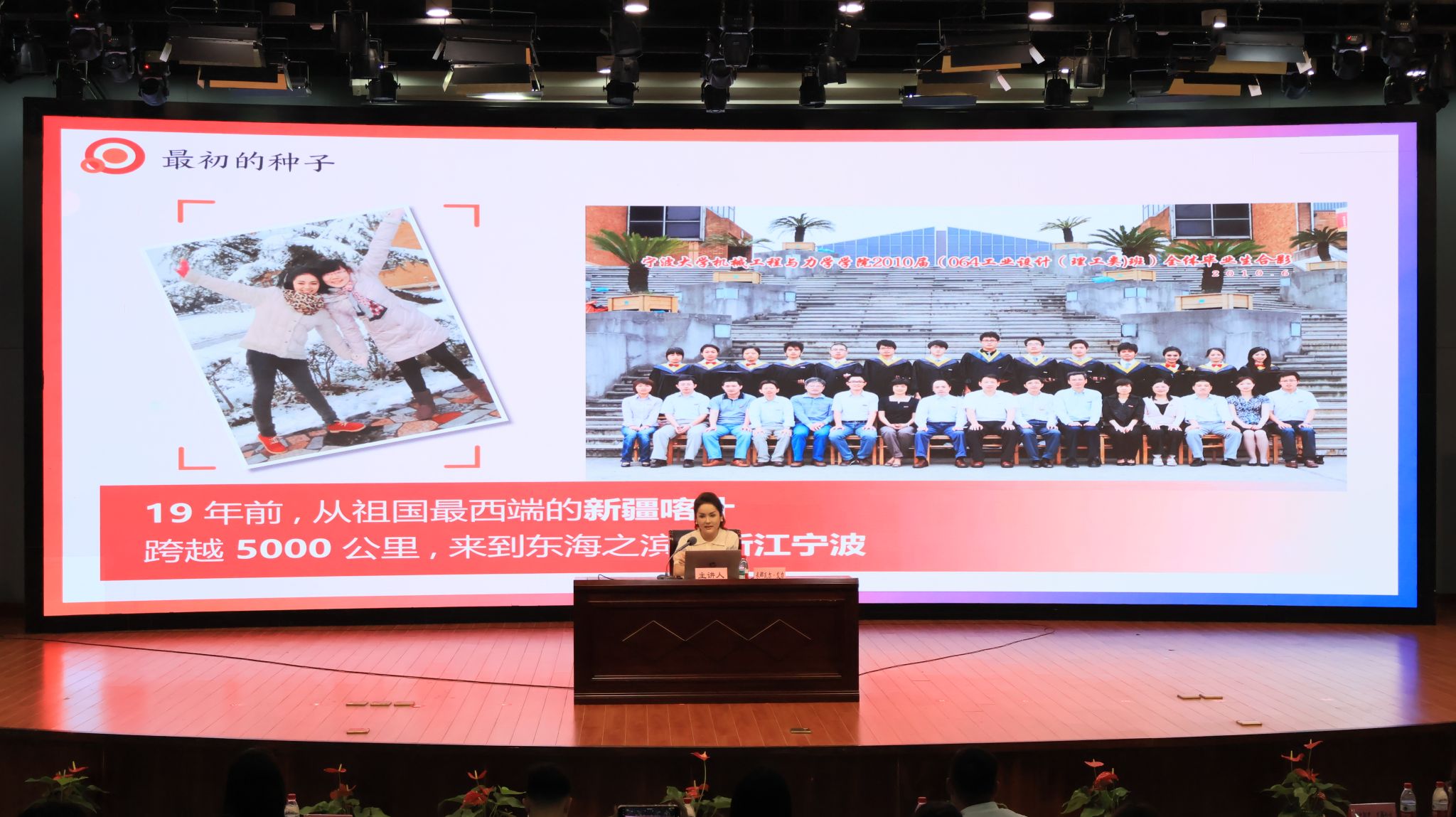 作为学校首批新疆籍毕业生,米娜瓦尔·艾力老师以《追光的日子》为题,深情讲述了自己从新疆边陲小镇出发,成长为一名高校思政工作者的不凡历程。曾获评全国民族团结进步模范个人、全国三八红旗手、新时代青年先锋奖等多项国家级荣誉的她,用亲身经历诠释了奋斗的价值。她创立的“米娜工作室”犹如一座灯塔,照亮并助力数百名少数民族学生成长成才的故事,深深打动了在场的每一位学子。当新疆籍毕业生提出“如何面对西部计划志愿者工作的挑战?”“留甬还是回疆?”等现实困惑时,米娜老师以温暖的微笑和饱含智慧的建议,给予了学弟学妹们最坚实的精神支撑,传递出校友对后来者深切的关怀。