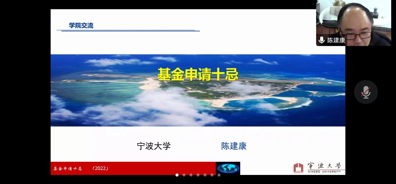 最后,结合陈老师讲解的内容和老师们的提问,彭文飞副院长进一步强调了把握学校学科地位、项目重要课题的选题和前期预研的重要性,着重提醒教师申报项目需要结合本校学科平台、所在研究团队和宁大的实验条件来构思申请书的主题和内容。