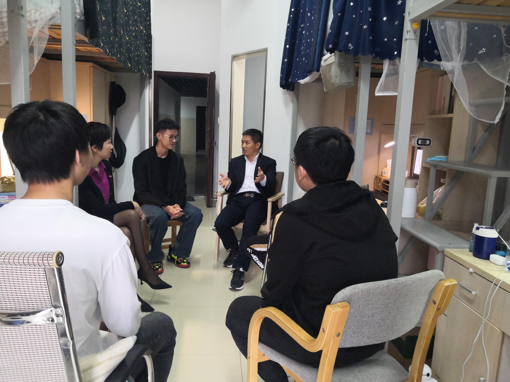 随后,他来到甬研公寓1号楼223寝室、430寝室与同学们围坐一起进行亲切地沟通交流,了解同学们近期学习、生活情况,亲切询问同学们在宁波学习生活是否习惯,关心同学们对专业课程的学习情况,和同学们细致交谈相关科研项目的学习心得,并为同学们在学习上提出宝贵建议。他以亲身经历告诉同学们要多方式学习、树立远大目标、严格要求自己、保持勤奋刻苦,把功夫做在日常,积极主动与导师加强联系、通过参加相关学术会议做好积累、做到厚积薄发,殷切嘱咐同学们期末好好复习、注意保暖以及疫情期间的自我防护。同时,针对同学们反馈的意见和建议,吕副校长也做出了正面的回复。