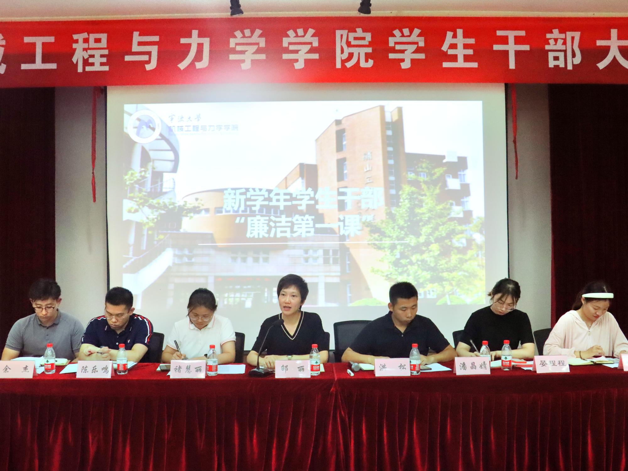 8月31日下午,机械学院在绣山工程楼三楼报告厅开展新学年学生干部“廉洁第一课”。学院党委副书记、纪委书记邵丽主讲,学院各大学生组织负责人、党支部书记、团支部书记、班长等120余名学生干部聆听了这堂专题思政课。