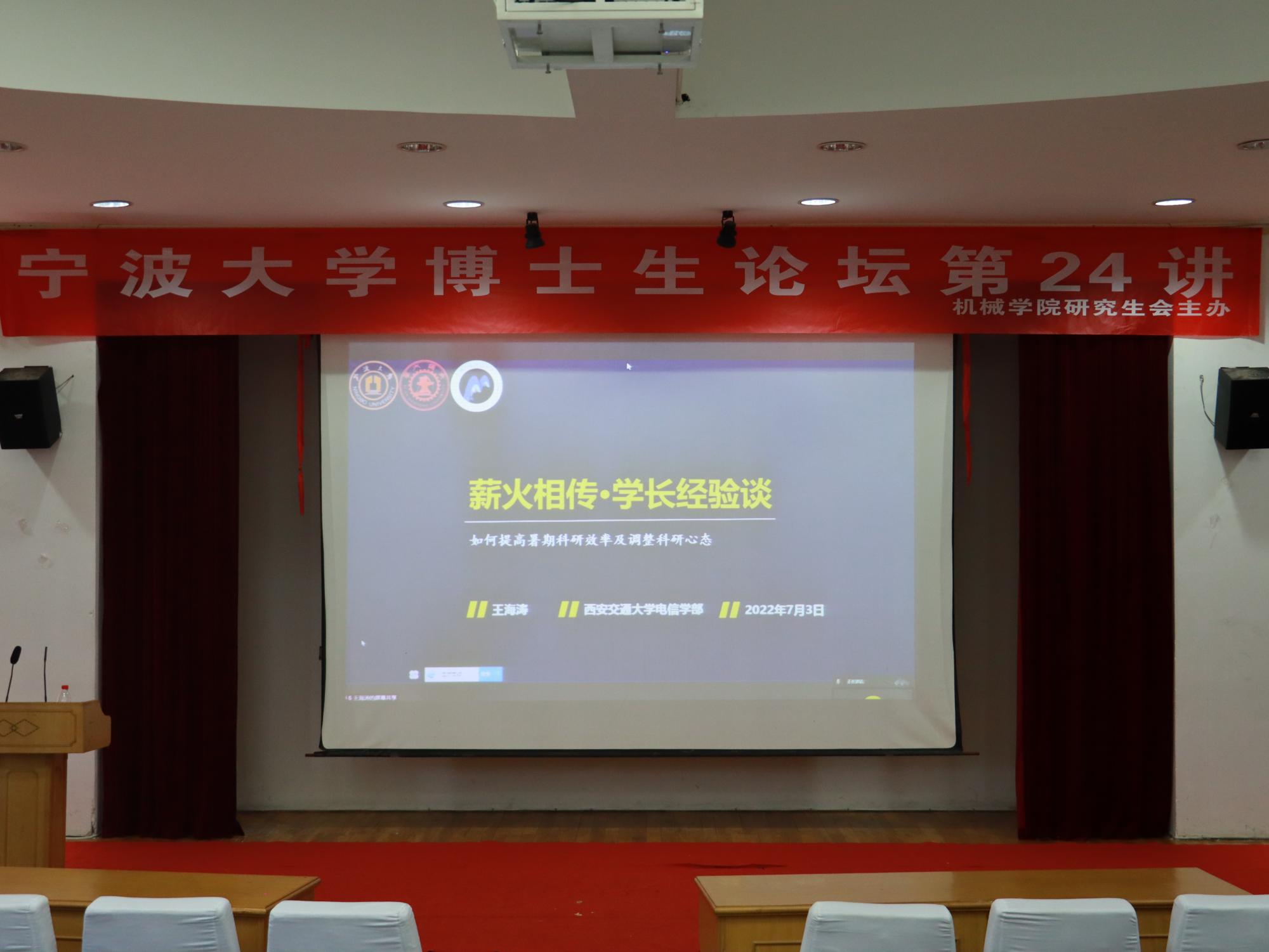 博士生论坛第24讲在绣山工程楼三楼顺利举行,西安交通大学博士生王海涛作为主讲人,分享主题为《如何提高暑期科研效率及调整科研心态》,机械学院共有70余名研究生参加论坛。