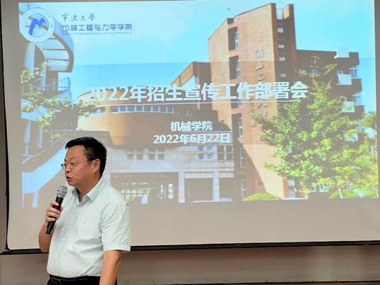为落实学校招生宣传相关工作任务、集中力量协同高效完成招生宣传工作,机械学院于6月22日召开2022年招生宣传工作部署会。学院特聘院长阮殿波、副院长张明华出席,教务办主任张晓娟、线上宣传联络员、线下目标高中宣传联络员、志愿者参加会议。会议由党委副书记邵丽主持。