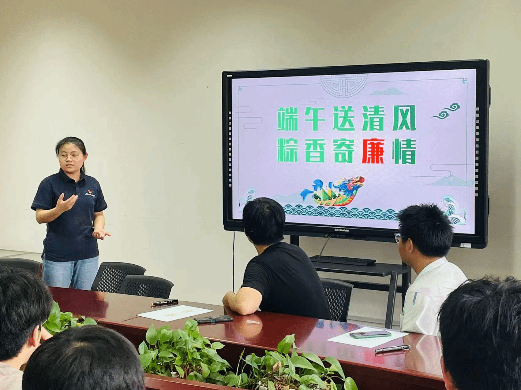 活动伊始,党支部书记褚慧丽向全体党员同志讲述了端午“党史学习指南”,端午节是我国首个入选世界非物质文化遗产的节日,更是弘扬爱国主义精神、坚定文化自信的好节日。支部结合重要节日,深挖内涵,在党日活动开展中推动党史学习教育常态化,使支部同志在参与活动的过程中做到知行合一,把党史学习的成果转化为踔厉奋发的使命担当,转化为干事创业的实际行动。随后,通过讲述端午人物故事、分享端午诗词、端午知识竞答等环节,党员同志们一起共话端午情。