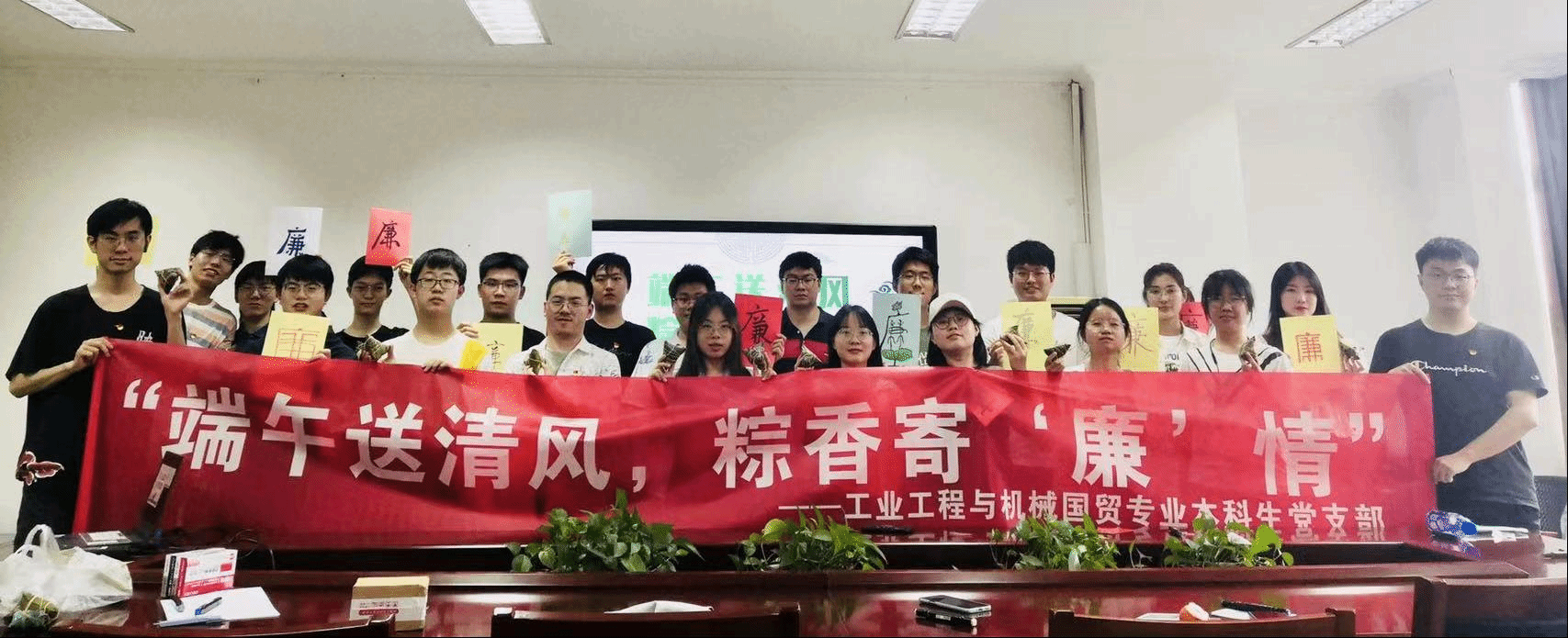为弘扬中华民族传统文化,倡导廉洁风尚,在端午佳节来临之际,机械学院工业工程与机械国贸专业本科生党支部开展“端午送清风 粽香寄廉情”主题党日活动,党员同志们话端午、忆习俗、共缅怀、齐奋进。