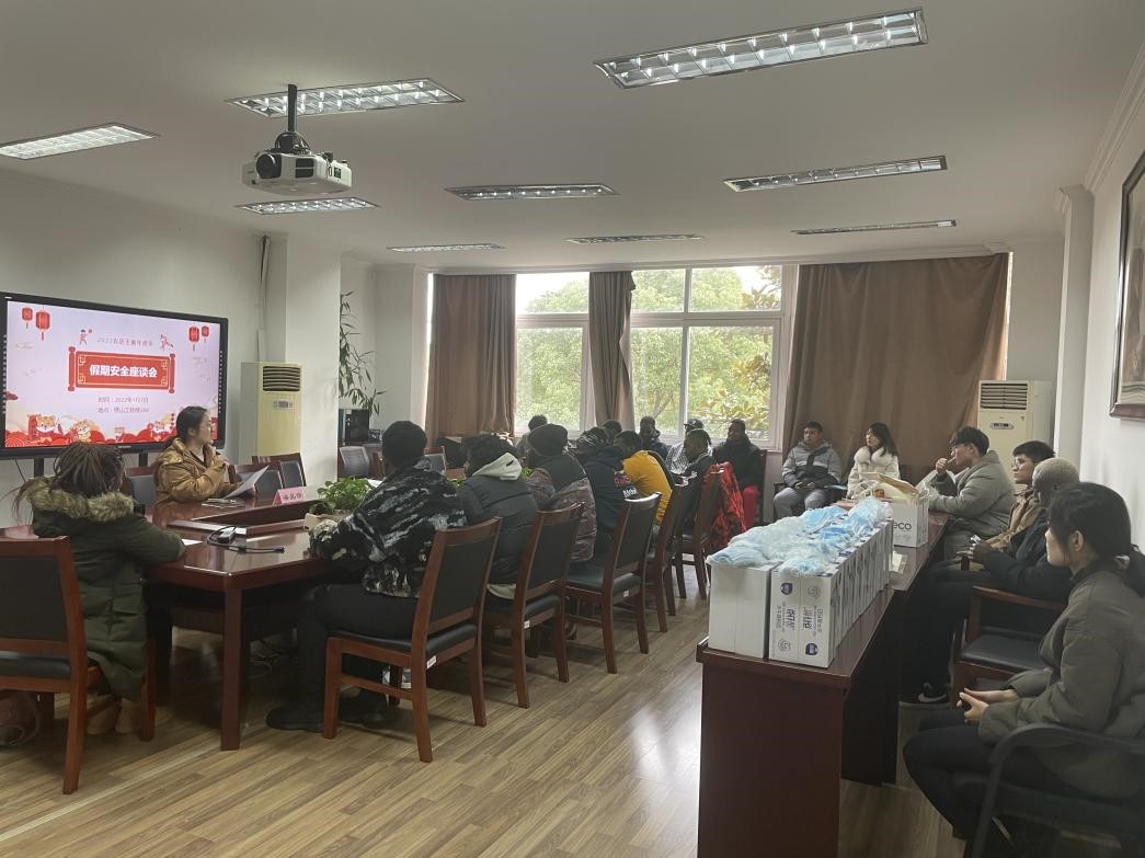 为保证假期的安全稳定,提高假期留校同学的安全防范意识,1月7日下午,机械学院组织召开假期安全座谈会,学院全体党政领导、相关辅导员和20余名中外留宿学生代表参加了本次座谈会。