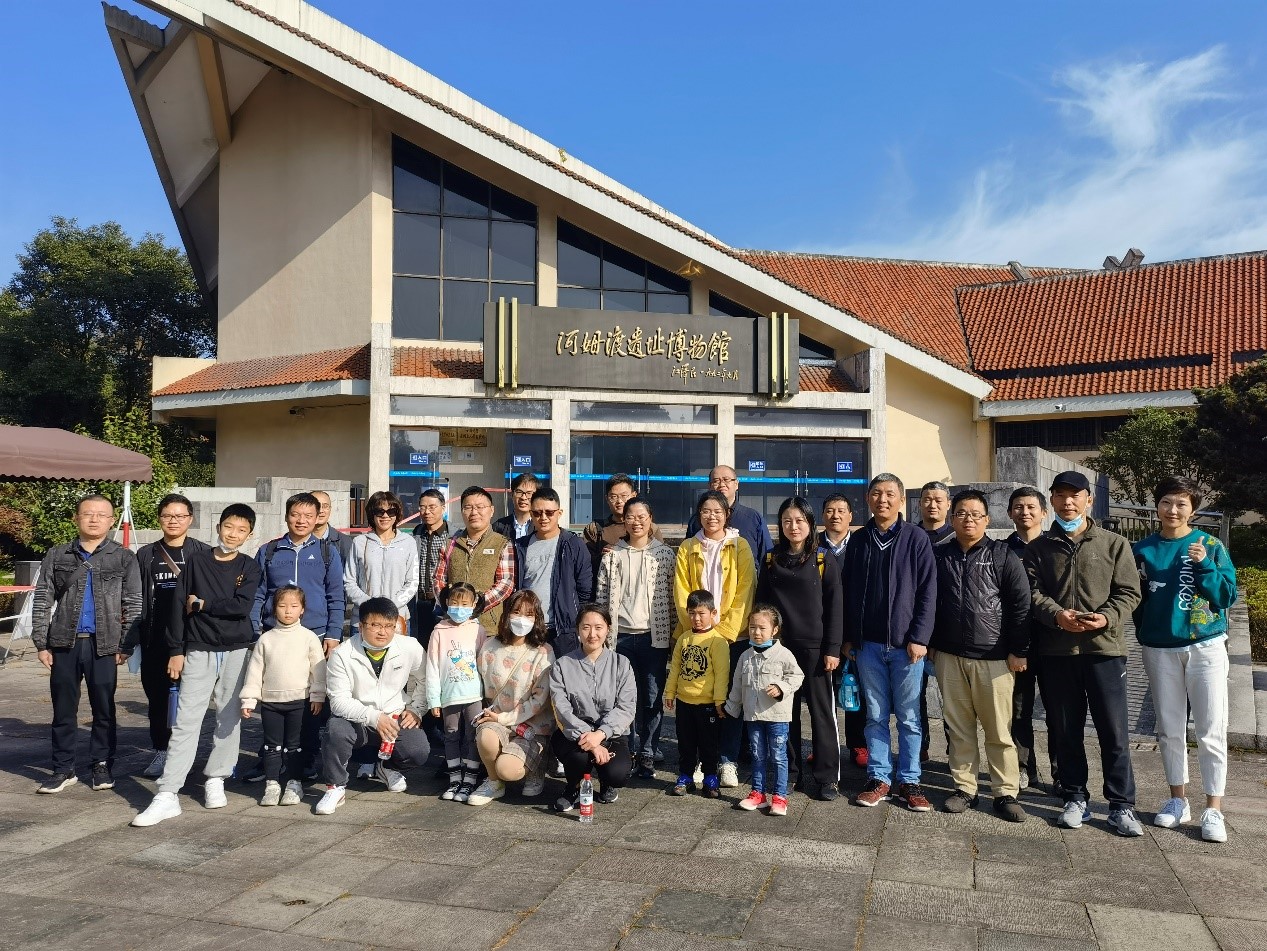 当日天公作美,暖阳融融,秋意盎然,上午老师们参观了河姆渡博物院和河姆渡遗址。河姆渡遗址是中国南方早期新石器时代(约7000—5000年前)遗址,是全国“百年百大考古发现”。它的发现为中国史学界和考古界提供了依据,证明长江流域是中华文明的重要发源地之一。老师们在博物馆中看到了5000年前精美的陶器、精致的骨器石器、神秘的纹饰以及典型的干栏式建筑等,惊叹于史前人类的生活智慧,深刻感受到古老东方文明的独特魅力。