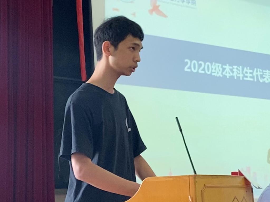 之后,班主任代表李凯老师发言,希望同学们能够树立崇高理想、正视困难、行稳致远,找准与国家发展相契合的人生定位,昂首阔步踏上与党同向、与国同行之路。18级代表齐斌学长作为老生代表,以自身学习经历经验为鉴,激励学弟学妹们全面发展,不忘初心,做到家事国事天下事事事关心。20级学生代表骆立锋同学提出“规划”与“自律”两大重要学习经验,激励同学们力求务实、创新、开拓进取。