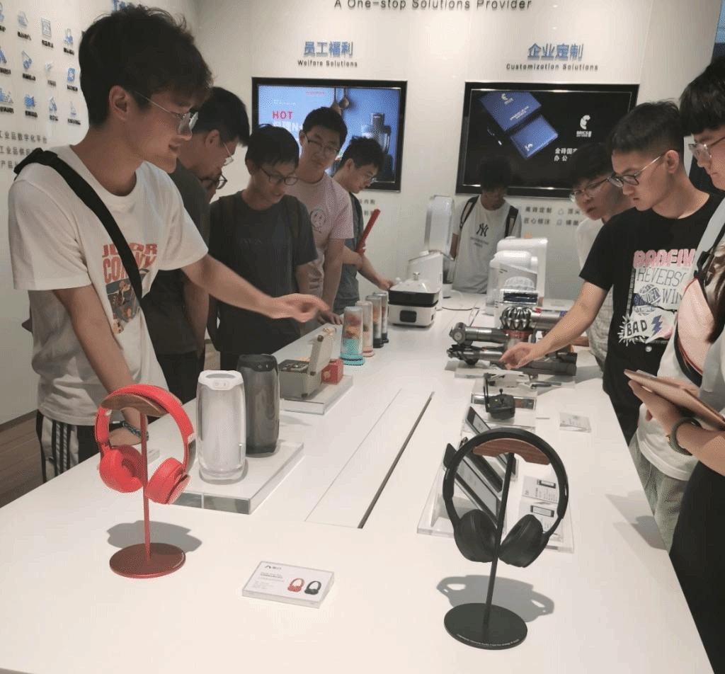 之后,邵经理向我们介绍得力集团的客户范围、组织架构及现阶段生产的产品,并带领大家参观了产品展览区。同学们在展览区认真观摩展示的产品,并向邵经理提出产品功能上的疑问,邵经理认真为同学们解答。通过了解这些优质的产品,同学们对得力集团有了全新的认识。