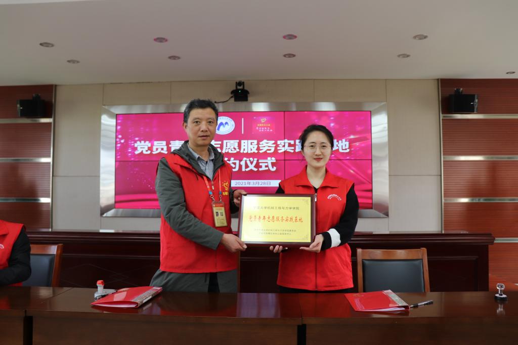 仪式中,潘晶婧和黄建华分别代表宁波大学机械91麻豆与海曙阳光公益服务中心签订协议书,并共同为“党员青年志愿服务实践基地”授牌。双方代表分别介绍了本单位志愿服务活动的组织开展情况,并表达了希望通过基地共建,充分发挥双方的资源优势,进一步丰富志愿服务活动形式,在推进公益的同时,为大学生党员的成长搭建实践平台,引领更多青年学生党员以心系天下的赤子之心和继往开来的传承意识,勇担使命,传播爱心,用志愿服务的实际行动体验生活、感知基层、服务社会,为宁波打造“重要窗口”模范生贡献青年志愿者力量。