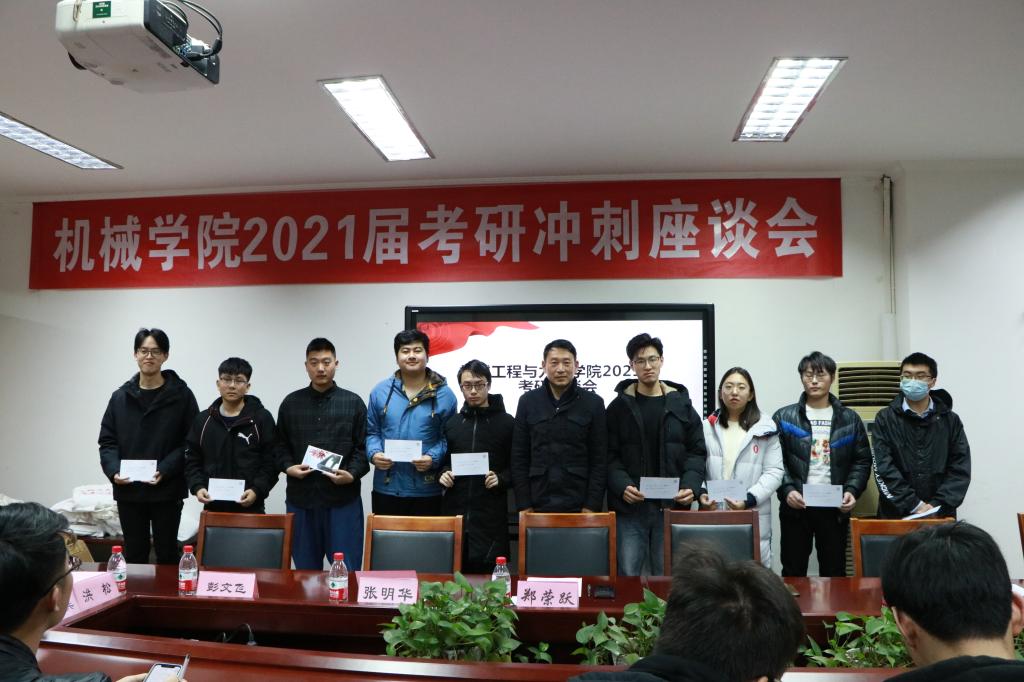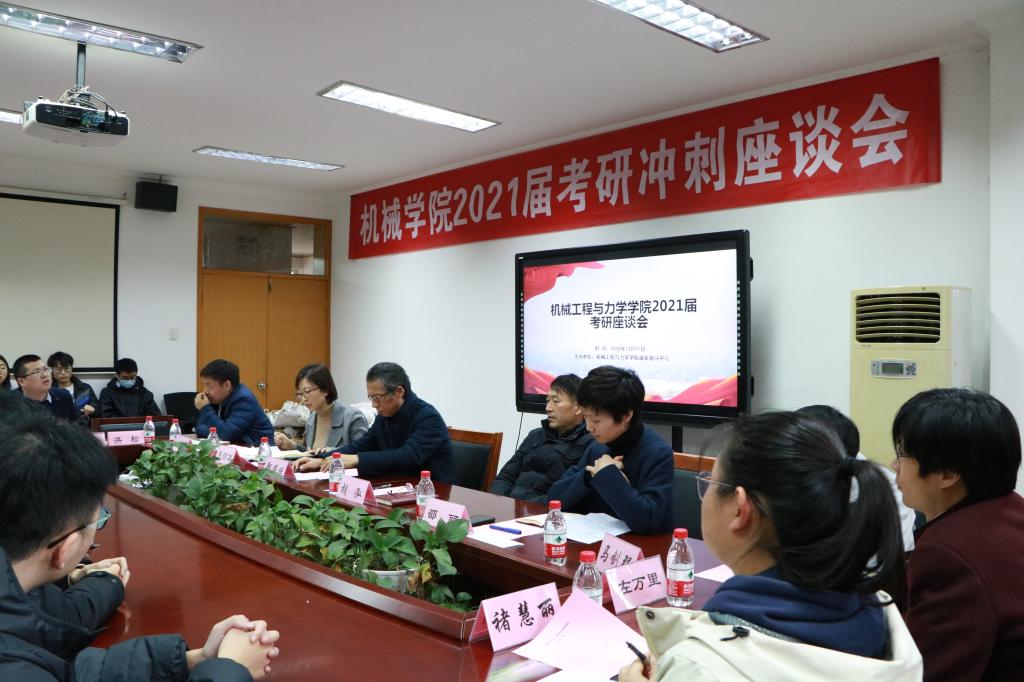 12月11日下午2点,机械学院2021届考研冲刺座谈会在绣山工程楼208会议室顺利举办。本次活动旨在为本院考研学子在寒冷的冬日里送上考研冲刺温暖礼包、听取考研同学珍贵建议、预祝考研同学成功上岸。本次考研座谈会得到了学院领导、老师的大力支持,学院党委书记胡泓、院长郑荣跃、党委副书记邵丽、副院长张明华、彭文飞悉数出席,参加座谈会的还有学院各系主任、学工办辅导员和30余位考研学生代表。会议由学院就业指导中心主任张万兵主持。