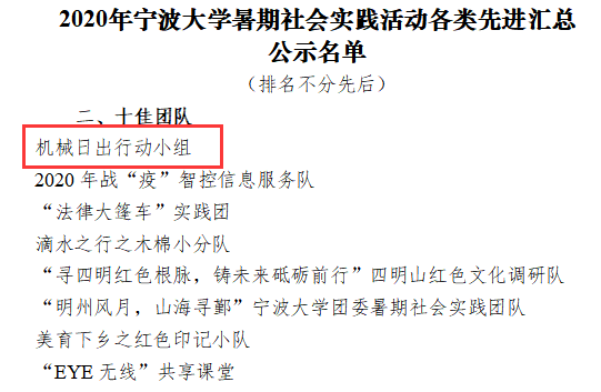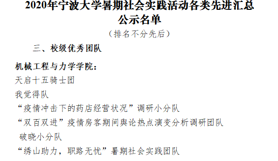 机械学院暑期社会实践活动圆满结束,荣誉的取得是对机械学子努力的肯定,也是对大家继续前行的鞭策。用暑期实践让广大同学用脚步丈量,用实地调研,了解中国实际,体悟青年人的责任担当,激励更多的人投入到社会活动中去,让小我的青春绽放在祖国的大地上,为全面建成小康社会贡献自己的力量!