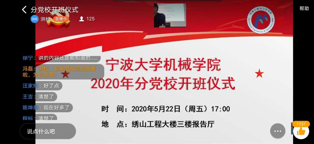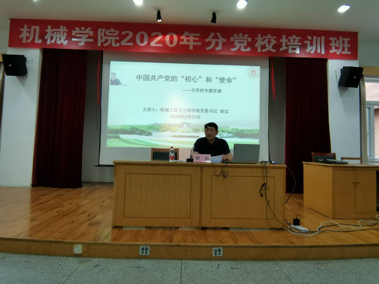为深入推进“不忘初心,牢记使命”主题教育活动,进一步加强学生党员群体的培训考察,5月22日下午,机械学院2020年分党校培训班举行开班仪式。院党委书记,分党校校长胡泓出席开班仪式并讲话。
