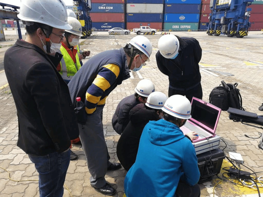 压电器件技术实验室团队在宁波大榭招商国际码头有限公司进行现场测试