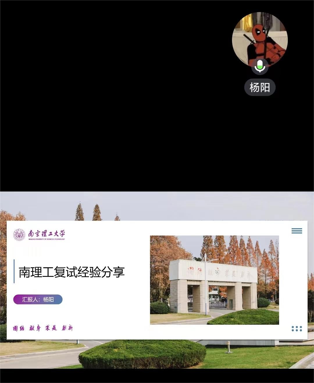 本次活动,以线上方式进行,共邀请学院4名分别考取浙江大学、南京航空航天大学、南京理工大学和中国科学院大学的2023届毕业生担任分享嘉宾。分享会上,4名同学首先向大家回顾了上届复试时报考院校的时间节点、流程安排、题型设置等基本内容,并围绕专业课知识准备、本科获奖情况、导师联系、英语听力与口语介绍、衣着礼仪、把握面试官等内容进行了详细的介绍。期间,还与学弟学妹们就关心的跨专业考研、竞赛获奖呈现、面试简历撰写等方面进行交流探讨。