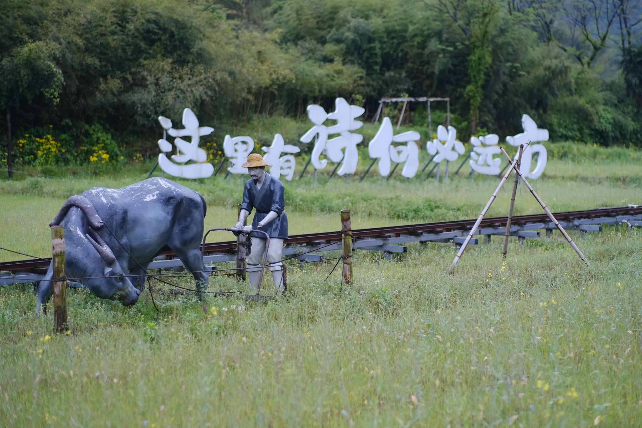天街小雨润如酥,趁着朦胧的雨色,大家第一站来到了俞塘村。大家刚进入村庄就已经体会到了田园山村的和谐氛围,山头雾气氤氲,空气清新,迎面而来的“幸福号”列车,擘画出乡村振兴的美好蓝图;漫步在拾里山谷的宋韵耕织园,6个春季节气的耕织图景在6间小木屋内外一一展陈,感受着不同节气的农耕特色;一列红色小火车穿梭在水稻之间,展现出“诗与远方”的田园牧歌图景。