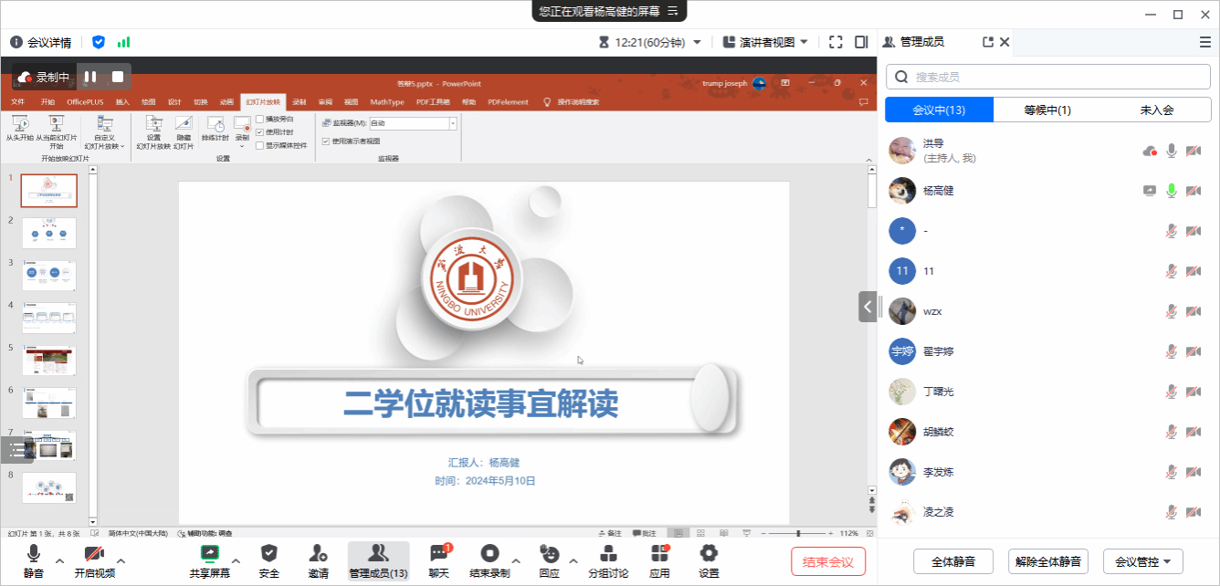 活动伊始,学院就业辅导员洪松老师围绕第二学士学位的含义、学校有关二学位的招收专业与计划、学生申请要求与流程,以及录取原则和具体的学籍住宿管理等内容进行了详细的介绍,鼓励同学们积极主动地寻求帮助和支持,共同度过学习生活中的每一个阶段。说明会还邀请2023级工程力学(第二学士学位)班的两位同学作在线分享。刚刚考取浙江大学机械工程专业杨高健学长分享了自己在第二学位就读期间的宿舍安排、课程安排以及如何与考研协调等方面的经验和见解。他详细介绍了如何合理安排时间,兼顾学业和考研准备,以及如何有效应对课业压力,为同学们提供了实用的建议和方法。考取91麻豆