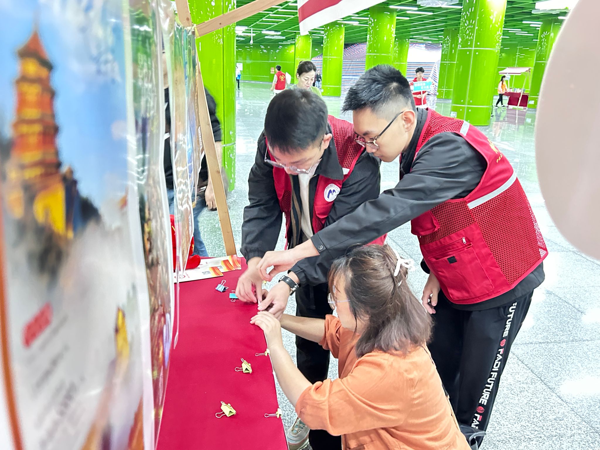 活动之前,机械学院的志愿者们提前一小时到达现场,协助主办方将活动所需物资和摊位相关道具运送到室内场地,并场地进行合理布置和道具摆放。活动开始,志愿者们在每一个摊位开展丰富多彩的如“看明信片猜地名”、“滴水不漏”、“国风体验站”、“消费权益视力测验”等有趣的小活动,告诉孩子们游戏规则并且为挑战成功的小朋友发放奖品。孩子们在志愿者和家长的陪伴下,尽情享受着游戏的乐趣。他们或在亲子游戏区互相追逐、嬉笑打闹,或在手工制作区发挥创意、制作精美小礼物,或在公益知识问答区学习新知识、展现聪明才智。每个孩子的脸上都洋溢着幸福的笑容,家长们也沉浸在亲子互动的欢乐中。