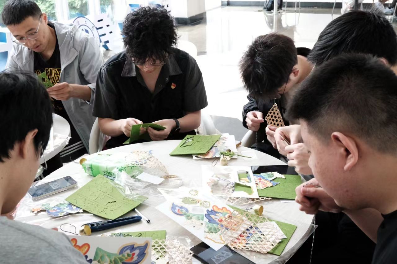 恰逢端午假期之际,支部成员一起制作端午龙舟,结合传统文化内容,融入自己的创意,开始手工制作。他们或是剪裁丝线,或是手工贴画,每一步都认真且专注。当每个挂件制作完成后,成就感挂在每个人的脸上,整个大厅洋溢着端午节的欢乐氛围。