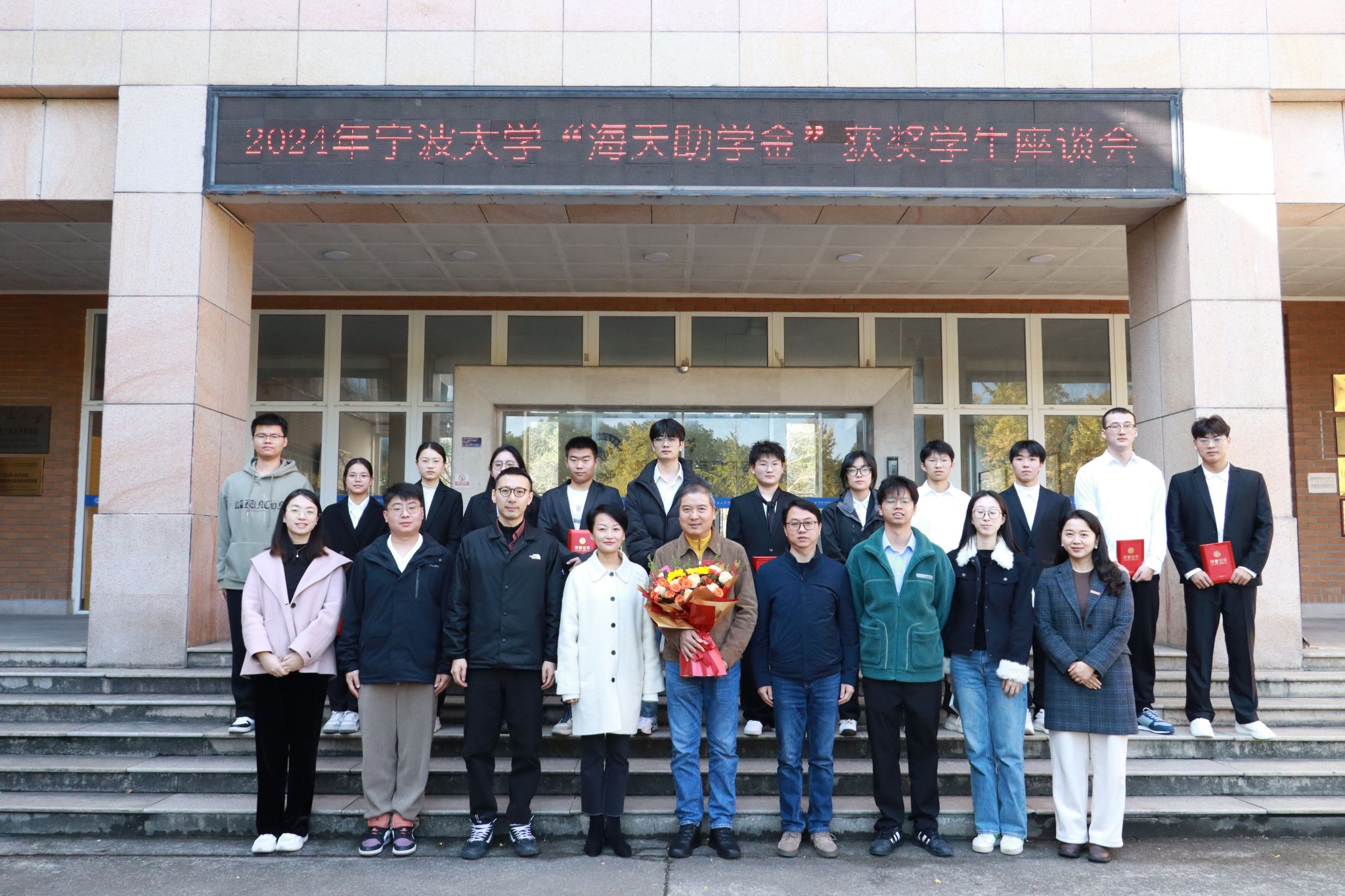 多年来的紧密合作,并对海天集团持续资助两院优秀学子的善举表示了崇高的敬意和衷心的感谢。他对同学们深情寄语,一要弘扬传承“宁波帮”精神。希望同学们都能根植这份感恩文化,学会珍惜,学会感激,接续奋斗,实干担当。二是身体力行“宁大”精神。同学们要实事求是,经世致用,打好专业基础,掌握过硬本领,在创新创业中实现社会价值和个人价值。三是心怀“国之大者”增强使命担当。同学们要率先有这样的意识,回应时代召唤,紧跟学科发展步伐,投身祖国迫切需要的科研难题、紧缺产业当中。