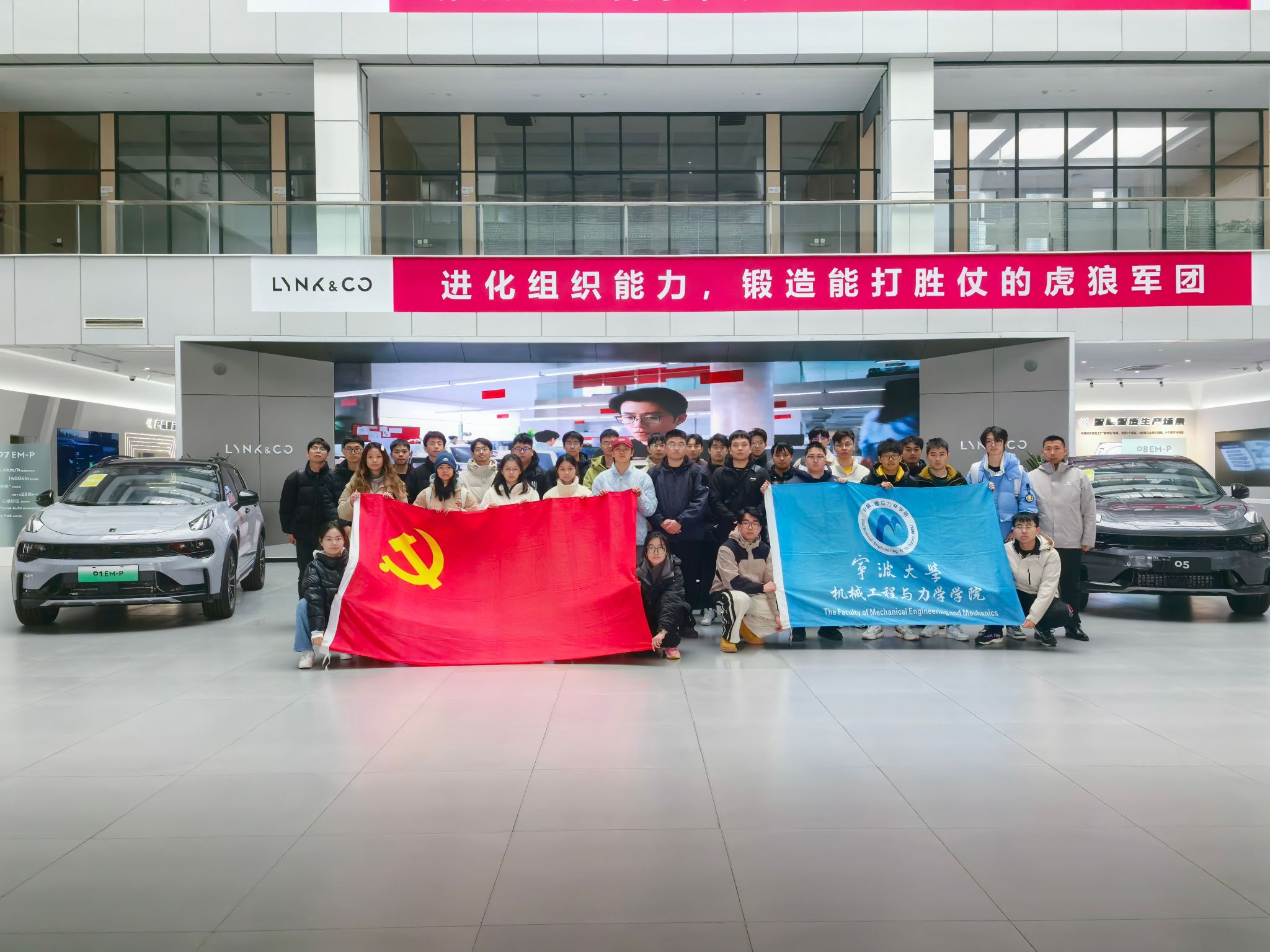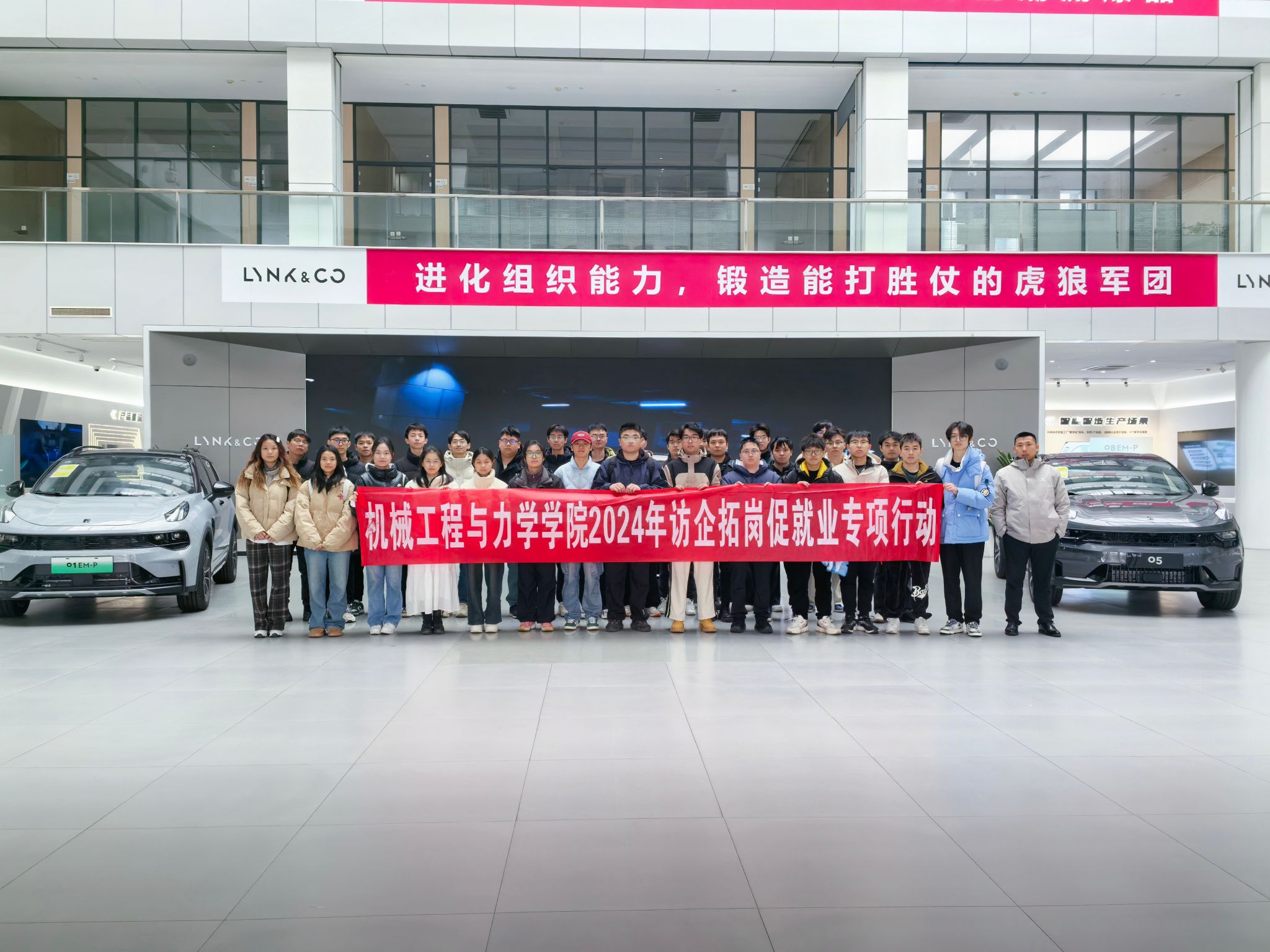 为积极响应国家关于促进高校毕业生就业的号召,进一步加强校企合作,拓宽毕业生就业渠道,机械学院于12月13日组织了一场以“党建引领搭桥梁 访企拓岗促就业”为主题的党日活动。本次活动由机械学院党委牵头,率领师生代表一行前往位于余姚市的领克汽车制造基地进行实地考察与交流,旨在通过深入了解企业需求,搭建校企合作桥梁,为毕业生提供更多高质量的就业岗位。