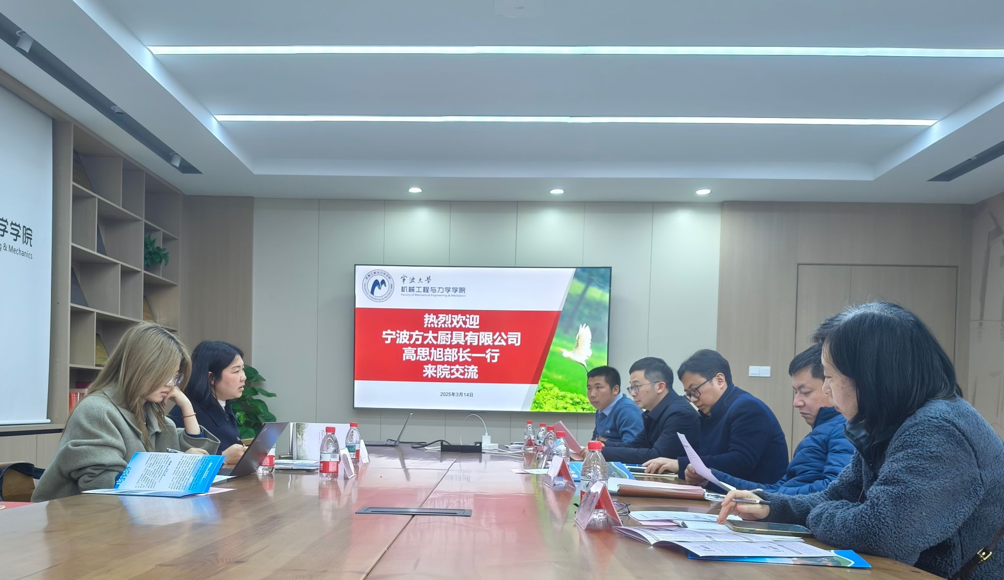 为深化复合型人才培养,加强校企协同联动,3月14日下午,宁波方太厨具有限公司(以下简称“方太集团”)招聘部长高思旭一行来学院开展合作交流座谈。机械学院党委书记王智腾、副院长彭文飞等领导老师参加交流会。