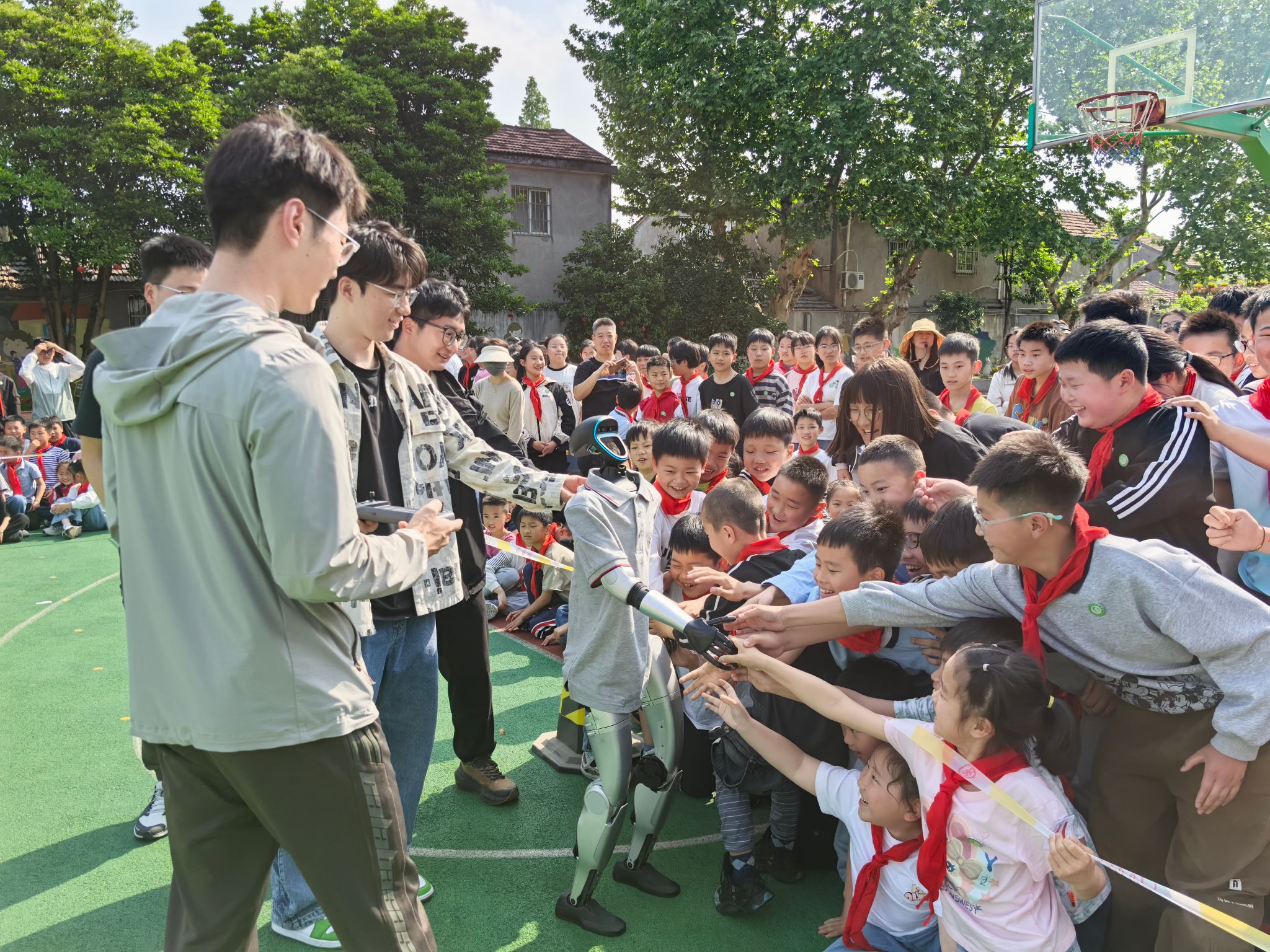 在科普活动中,科普团队为尚德学校全校师生讲解四足机器人、人形机器人相关知识,演示四足机械狗、人形机器人的各种功能和酷炫动作,并指导同学们亲身操作四足机械狗,以及与人形机器人握手互动,向同学们展示了现代机器人技术的魅力激发了同学们对科技创新的浓厚兴趣,活动现场气氛活跃科普教育成效显著。