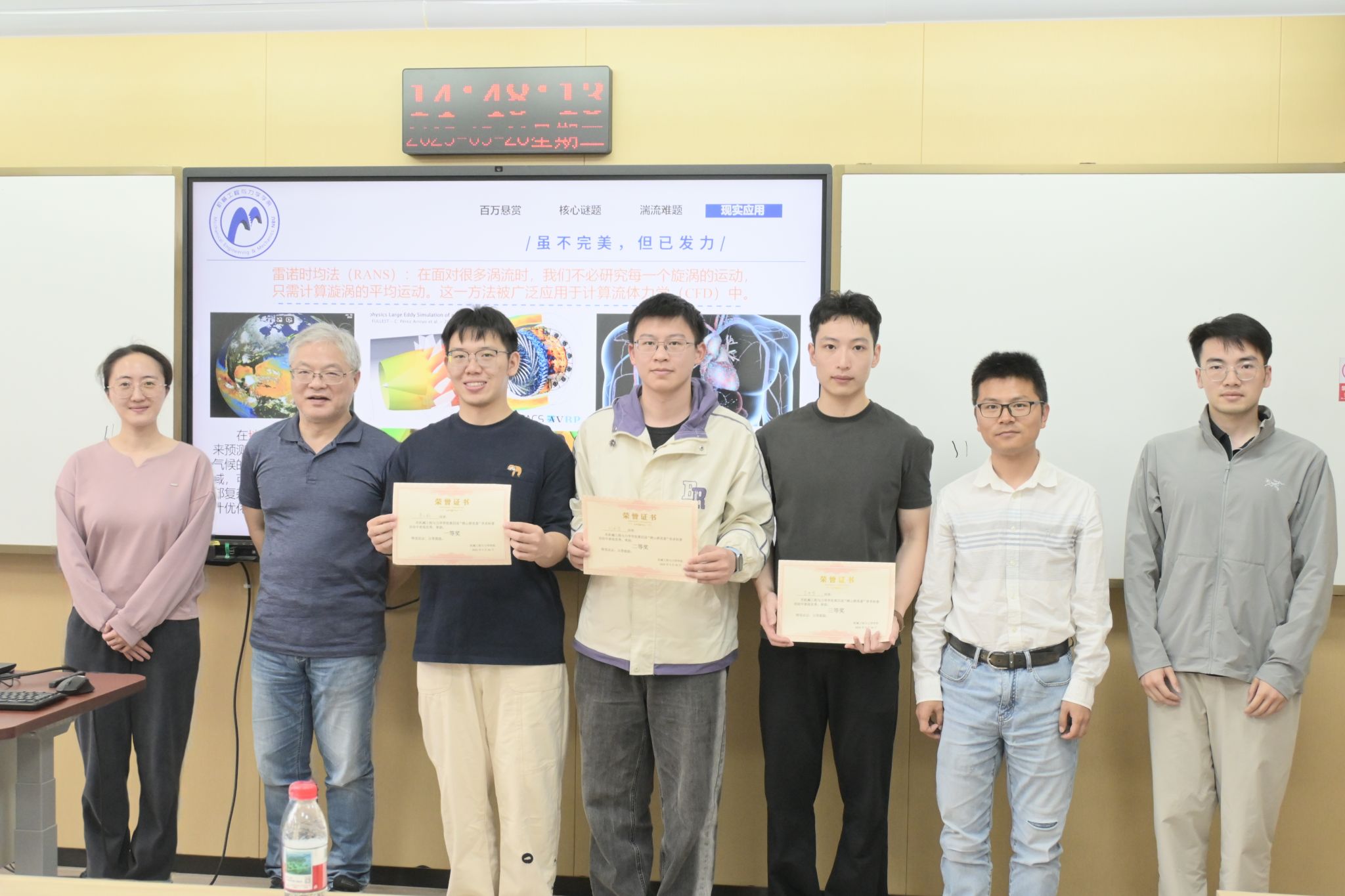 最后经现场评审的综合赋分,李义新同学的《如何成为百万富翁——解密湍流》以沉浸式场景化讲解获得第一名;刘泽堃同学通过动态演示展现的《当流体遇见生命:揭秘生物集群的力学智慧》获得第二名;范思哲同学的《如何跑得快,跳得高,活得久?》则以深入浅出的讲解获得第三名。