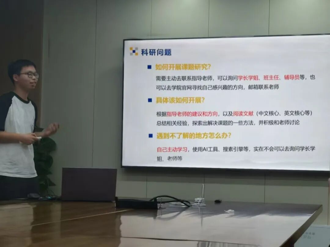 为帮助大一新生,8月31日晚,在绣山工程楼208室举行了一场别开生面的学姐学长经验分享会,多位优秀学长学姐倾囊相授,分享宝贵经验与独到见解,为与会同学提供了实用而丰富的指导。243工程力学(拔尖人才创新班)夏薇学姐结合自身大一阶段的经历,生动讲述了大学生活的丰富多彩与无限可能,并就高效学习方法提出了实用建议。分享结束后,她贴心留下联系方式,便于后续为同学们答疑解惑、深入交流。225工业工程班励杭哲学长则依托丰富的科研经历,系统介绍了科研工作的各个环节,包括前期准备、典型问题及应对方案等,帮助同学们对科研实践建立了更清晰的认识,增强了参与信心。他也留下了联系方式,欢迎同学们进一步咨询。最后,223工程力学(拔尖人才创新班)施思学姐对会议内容进行了系统总结与补充,深入剖析了同学们未来可能面临的各类问题,并细致解读了相关校内政策,助力大家对校园生活形成更全面、清晰的认知,进一步增强了对未来的期待与信心。