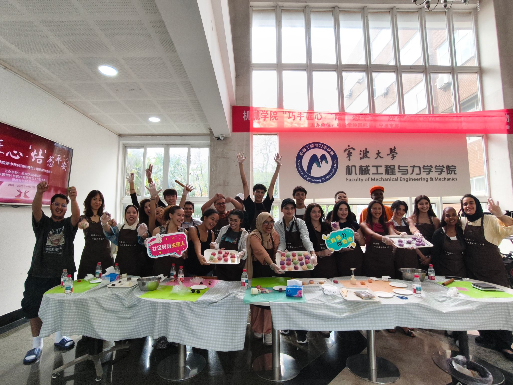 国际部联合鄞州区潘火街道潘火桥社区纤源坊“妈妈主理人”团队、紫郡社区,在宁波大学绣山工程楼一楼大厅举办“巧手匠心,‘焙’感平安”迎中秋庆国庆活动,以传统美食为媒,传递平安理念,共话佳节温情。2025级国际新生、机械联合培养研究生党支部代表、工业工程与机械国贸专业本科生党支部代表共50余人参加本次活动。