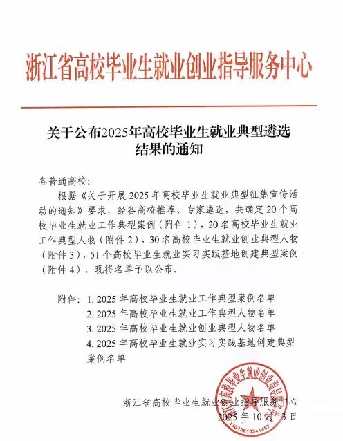 近日,浙江省高校毕业生就业创业指导服务中心公布《2025年高校毕业生就业典型遴选结果》,共设四类典型:高校毕业生就业工作典型案例、就业工作典型人物、就业创业典型人物、就业实习实践基地创建典型案例。宁波大学在全部类别中均有师生或案例入选。其中,由我院申报的校企合作实践基地《宁波大学-海天塑机高端装备制造实践育人基地》获评“高校毕业生就业实习实践基地创建典型案例”(全省共51个,全校唯一)。
